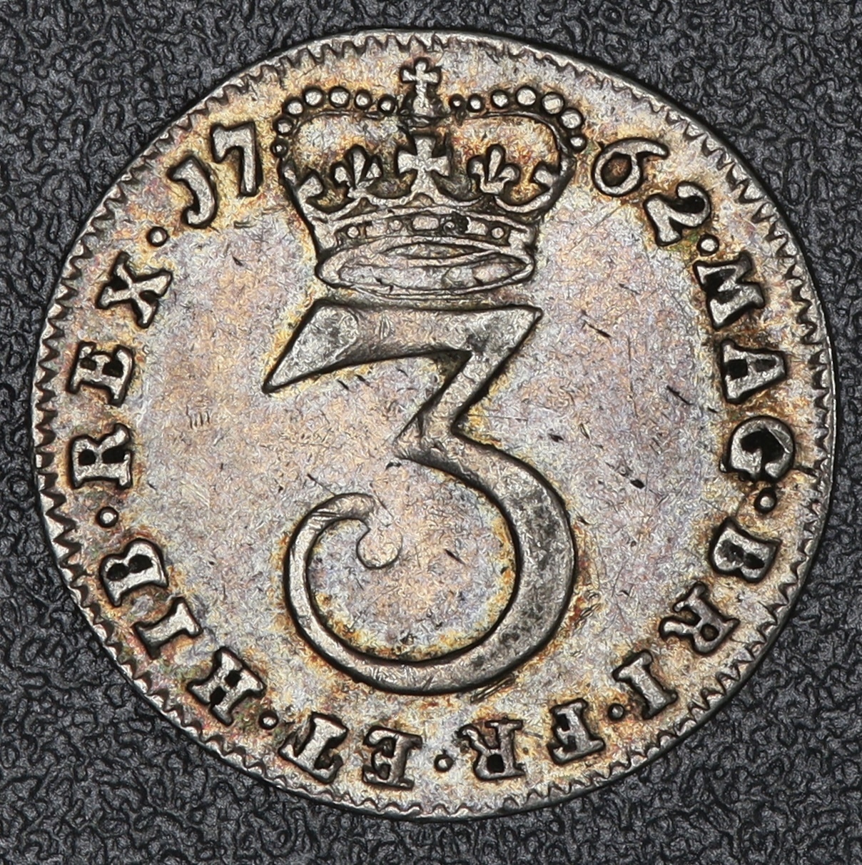 Scarce 1762 King George 111 silver Threepence. Minted in 1762/3 only making them relatively scarce. This coin displays excellent detail and a full flan.
