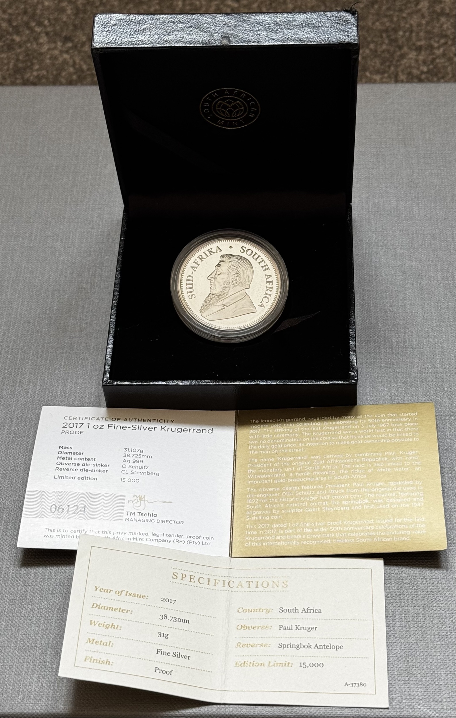 2024 1oz silver proof krugerrand. A choice attractive investment with excellent eye appeal.