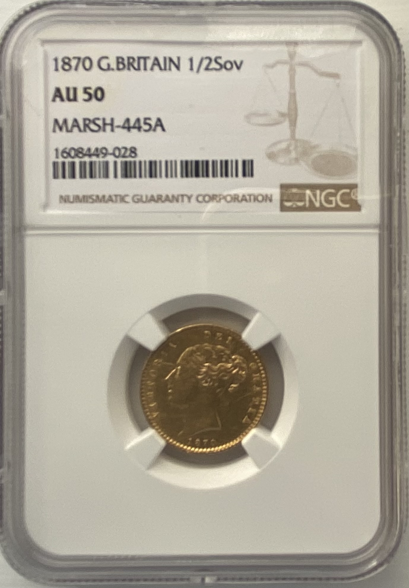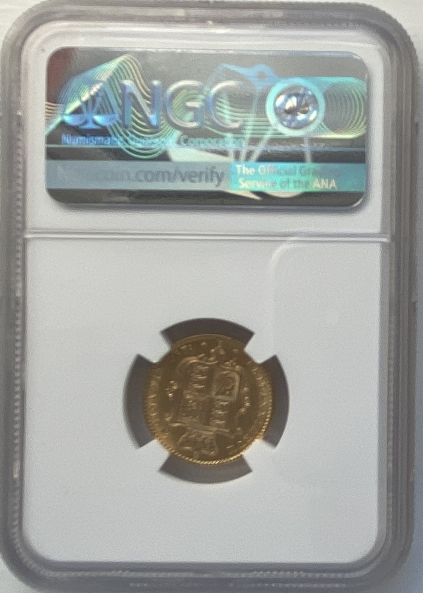 Professionally graded by NGC AU50. No dot on garnished shield.