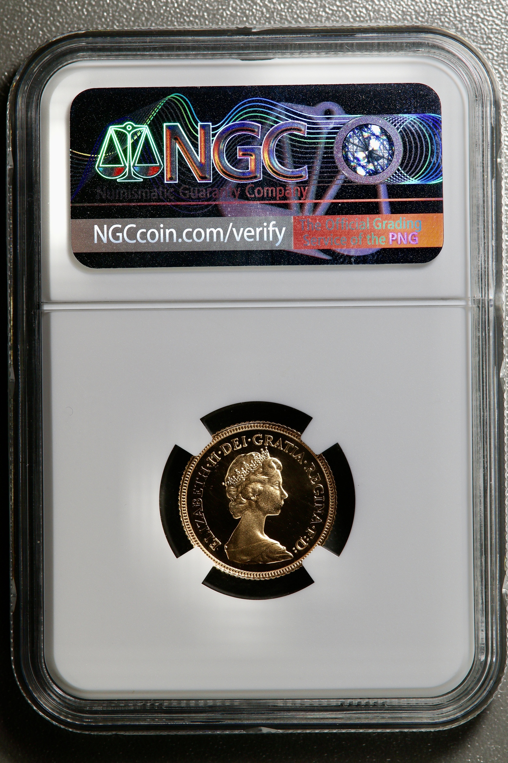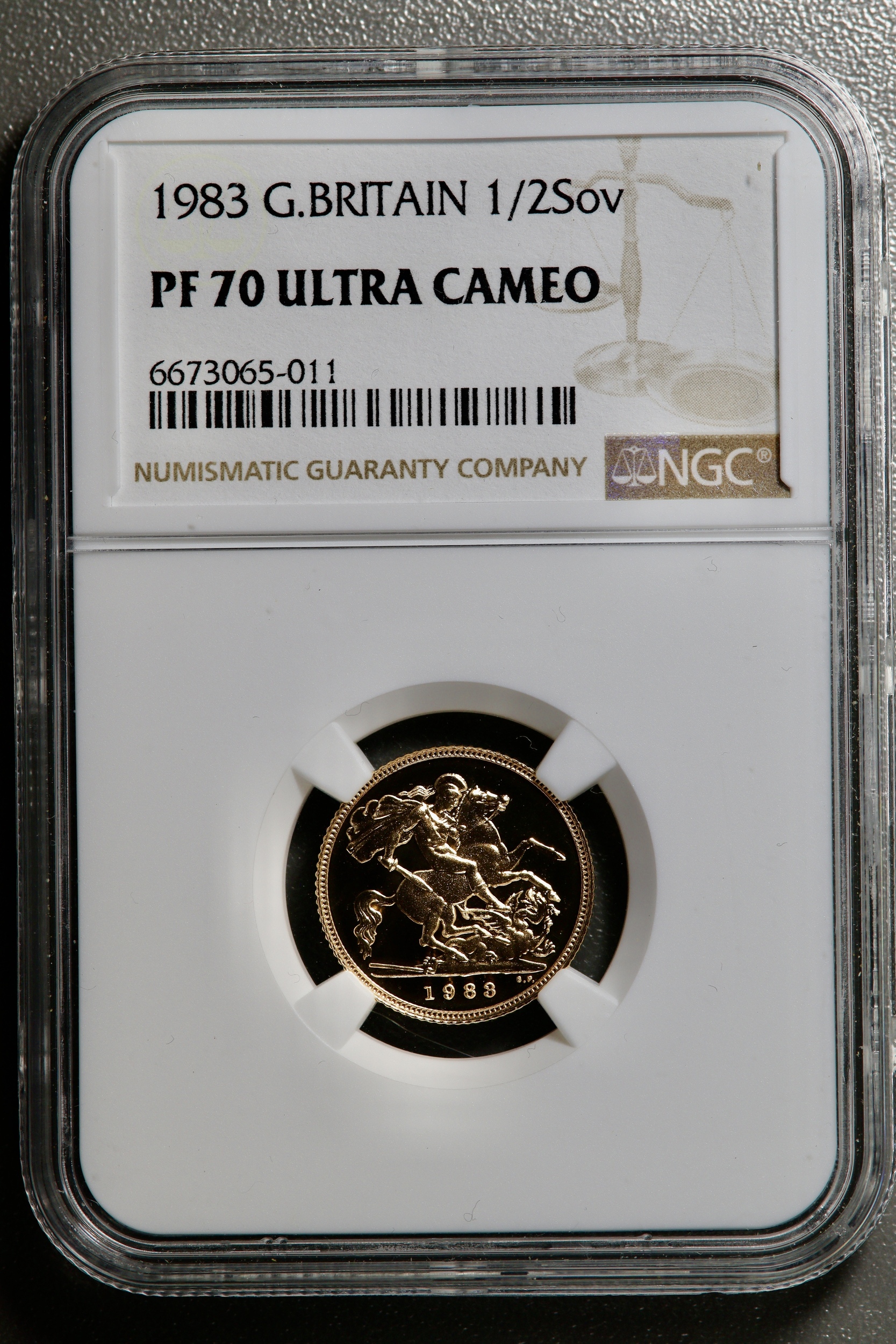 1983 Queen Elizabeth 11 gold half proof sovereign. Professionally graded by NGC PF70 Ultra Cameo - the finest