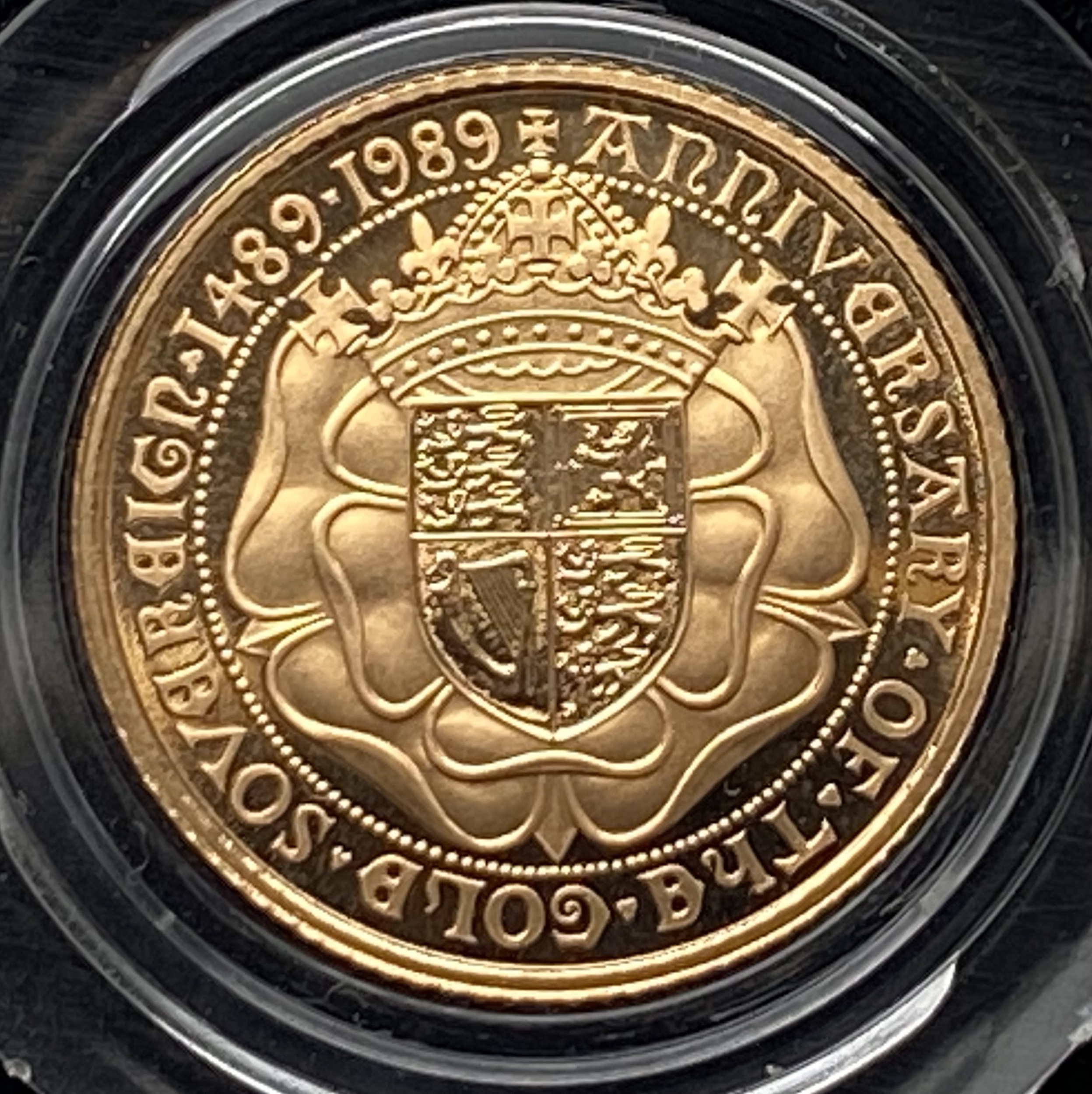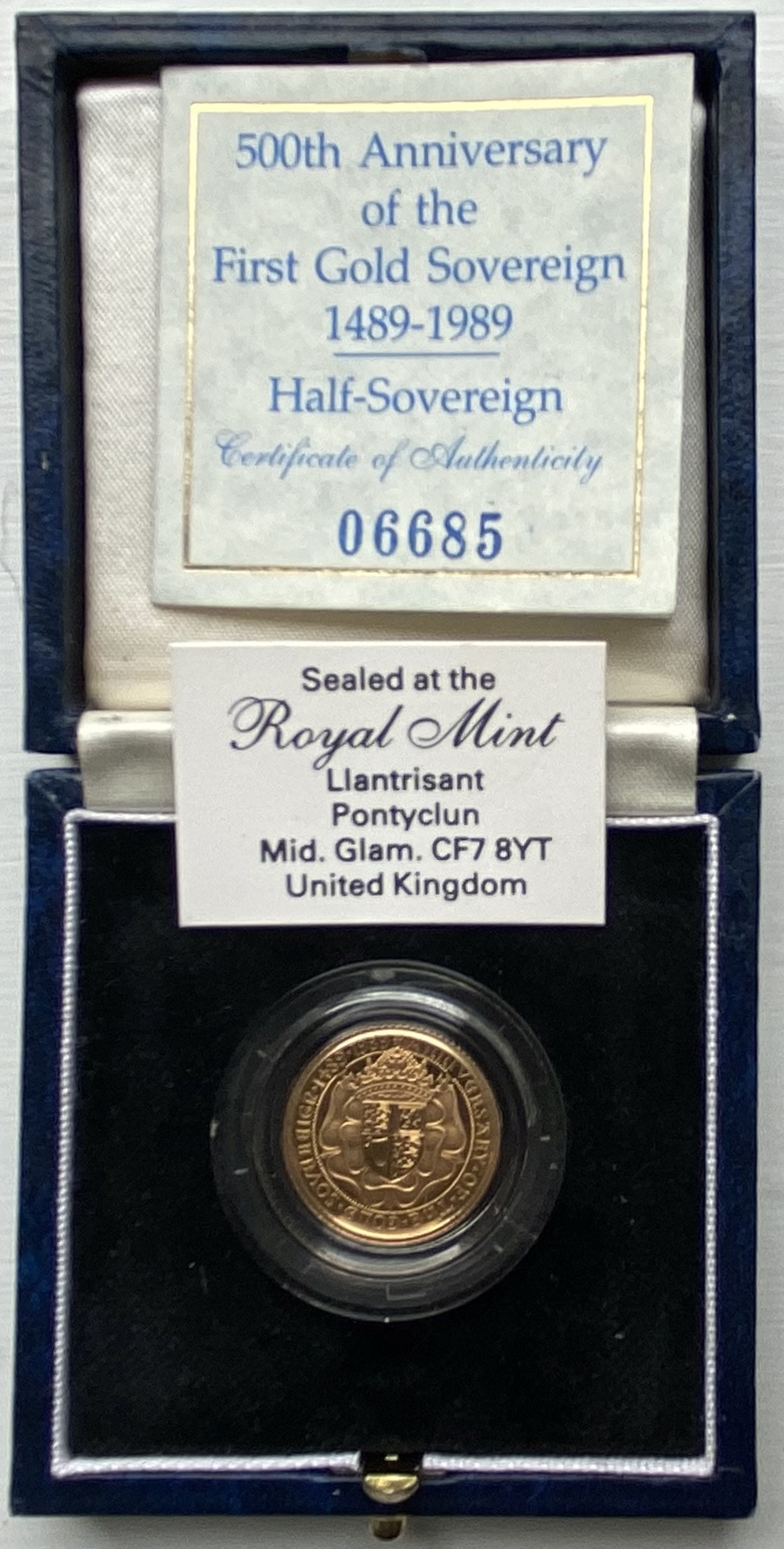 1989 QE11 proof half gold sovereign. Only 10,000 minted to commentate 500 years of the modern sovereign. All original mint paperwork and this coin is the 6685 minted.