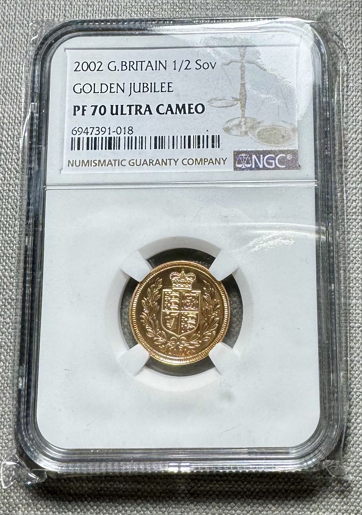 Perfect FDC 2002 Queen Elizabeth 11 gold proof half sovereign. Especially commissioned to mark the golden jubilee. NGC PF70 - perfect, the finest. NGC - 6947391-018