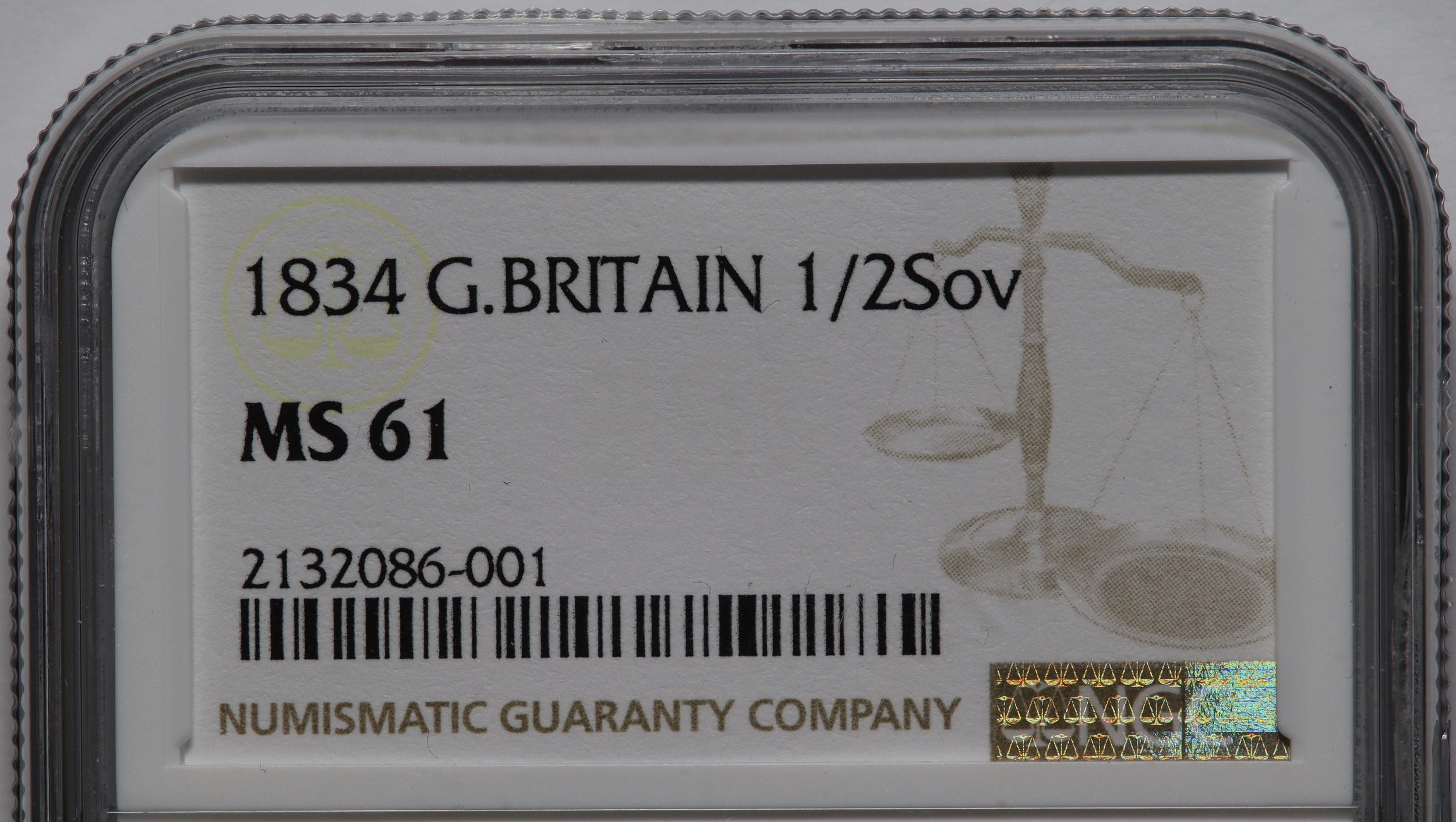 A mint state example of a 1834 small size King William gold half sovereign. Normally seen in lower grades only. A beautiful example example displaying mint bloom & lustre. NGC MS61. Marsh R2 and becoming increasingly difficult to obtain in MS grades.
