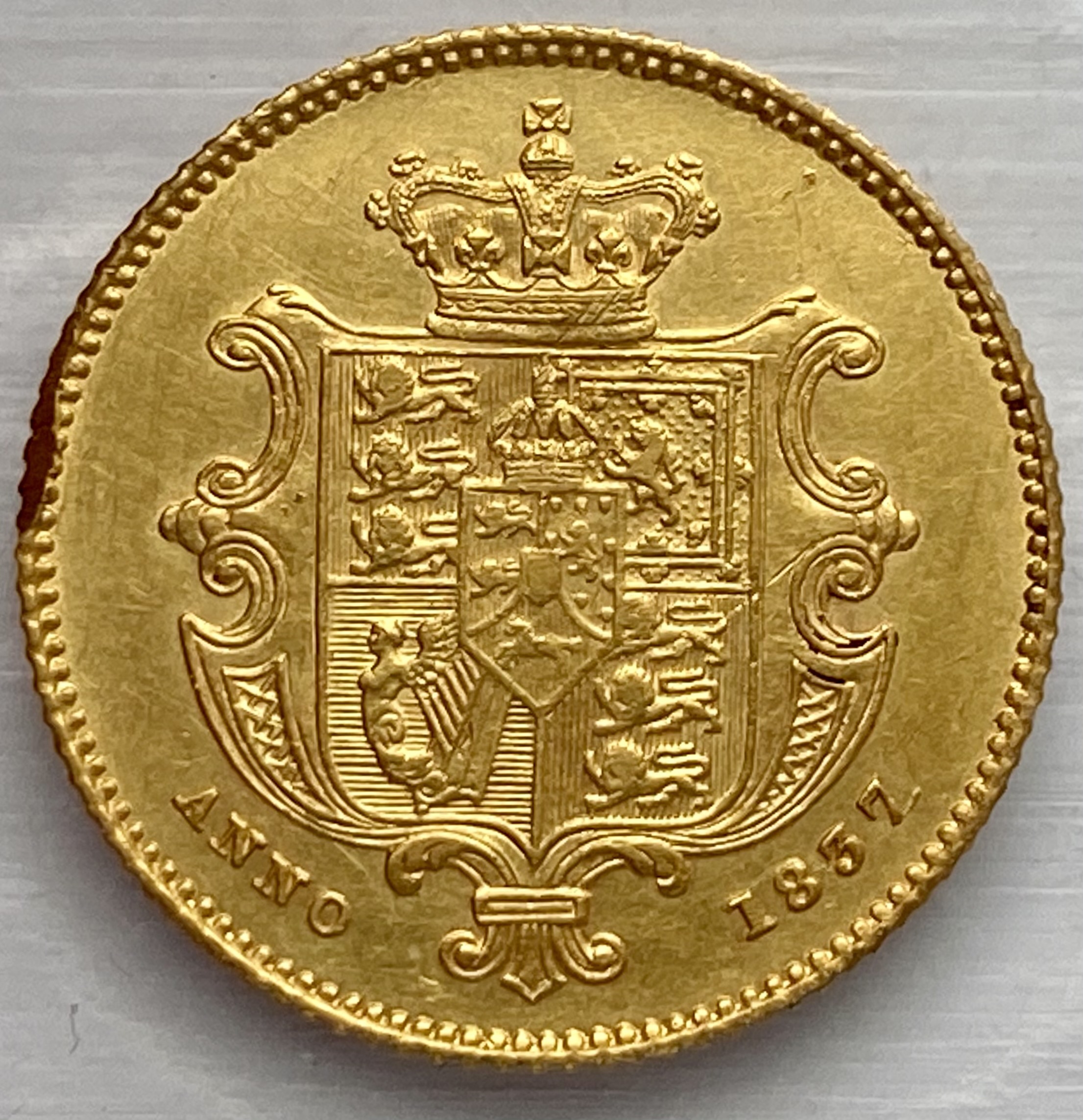 A very nice 1837 King William gold half sovereign. . A very desirable coin, edge bruise to reverse.