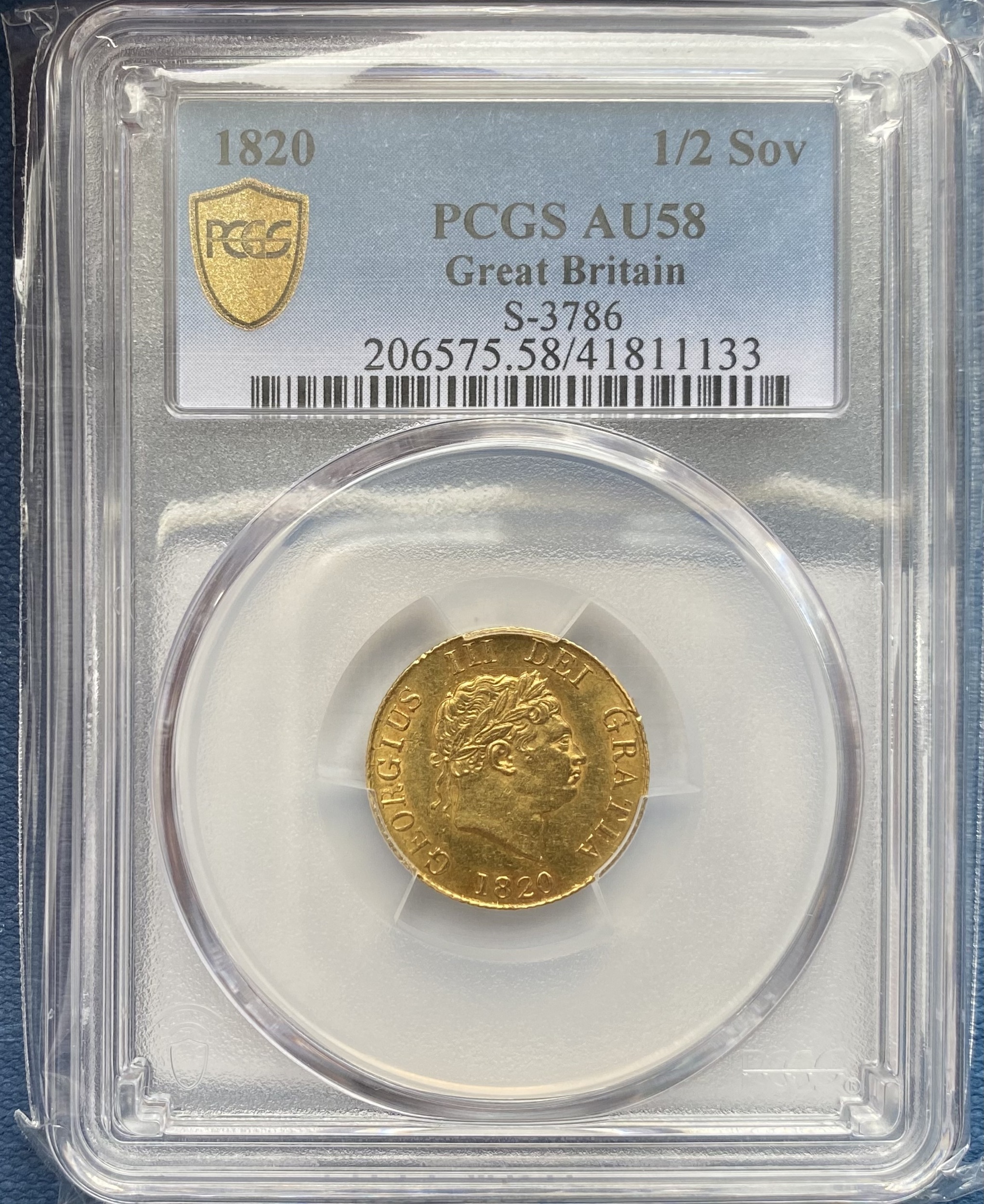 Marsh rated R2 (very rare) 1820 King George 111 gold half sovereign. A great addition to any collection. Risk free. Under graded in our opinion. Pictures before & after grading.