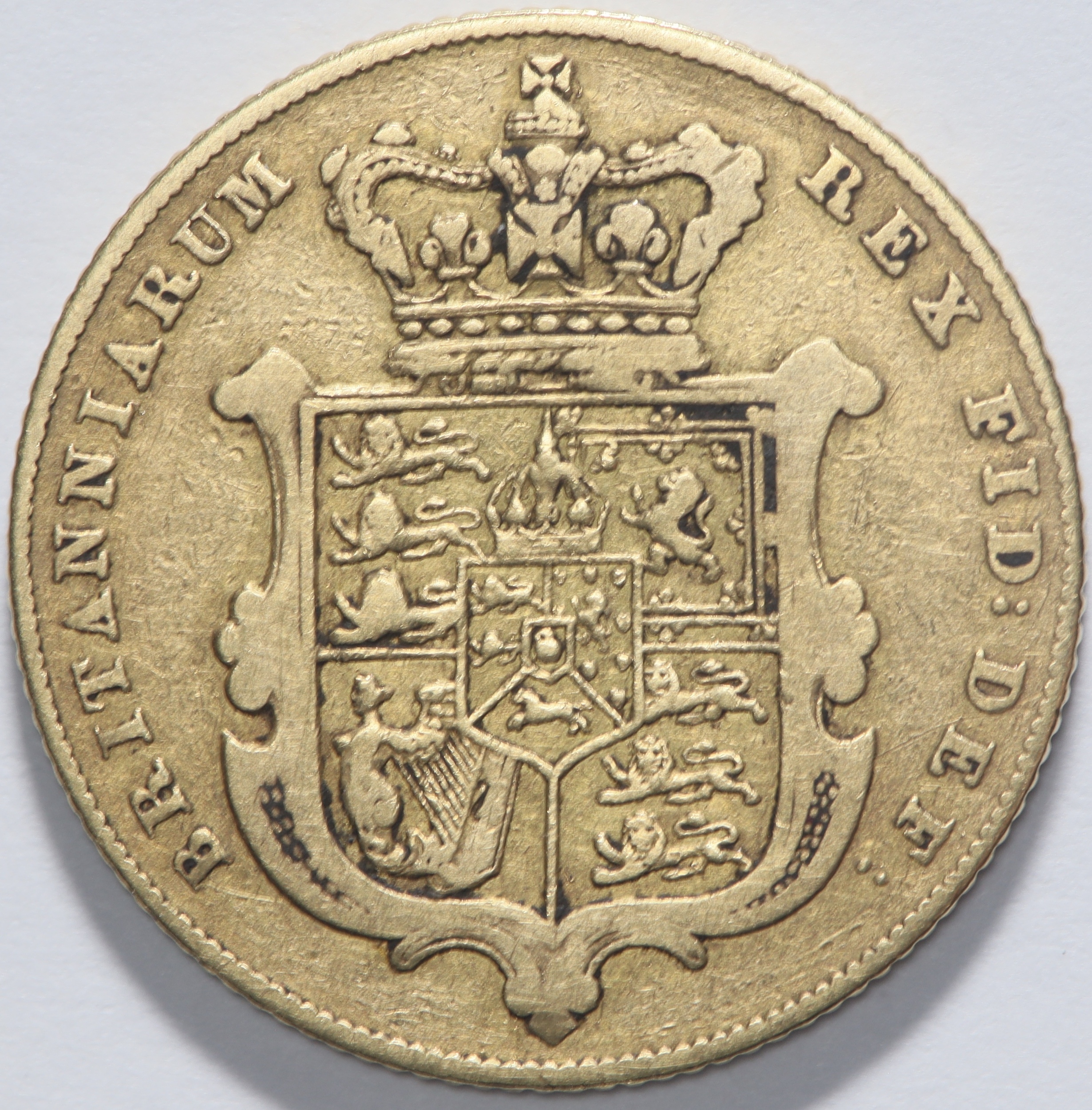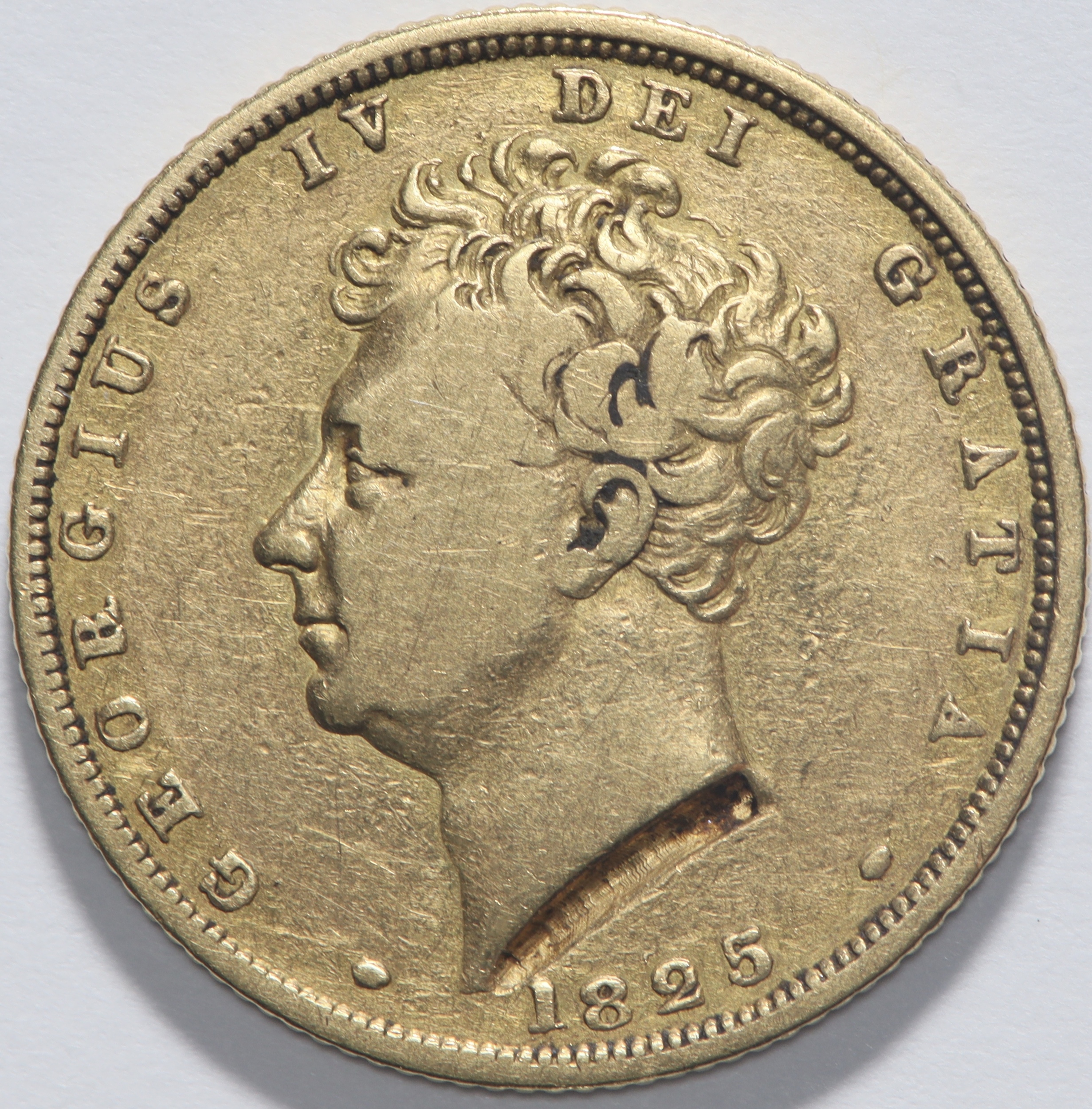 1825 King George 1V full gold sovereign. Never cleaned or mounted but has damage under bust.