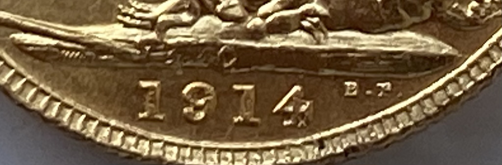 A choice uncirculated 1914 C King George V full gold A superb example of this low mintage (14900) sovereign from the Ottawa mint.