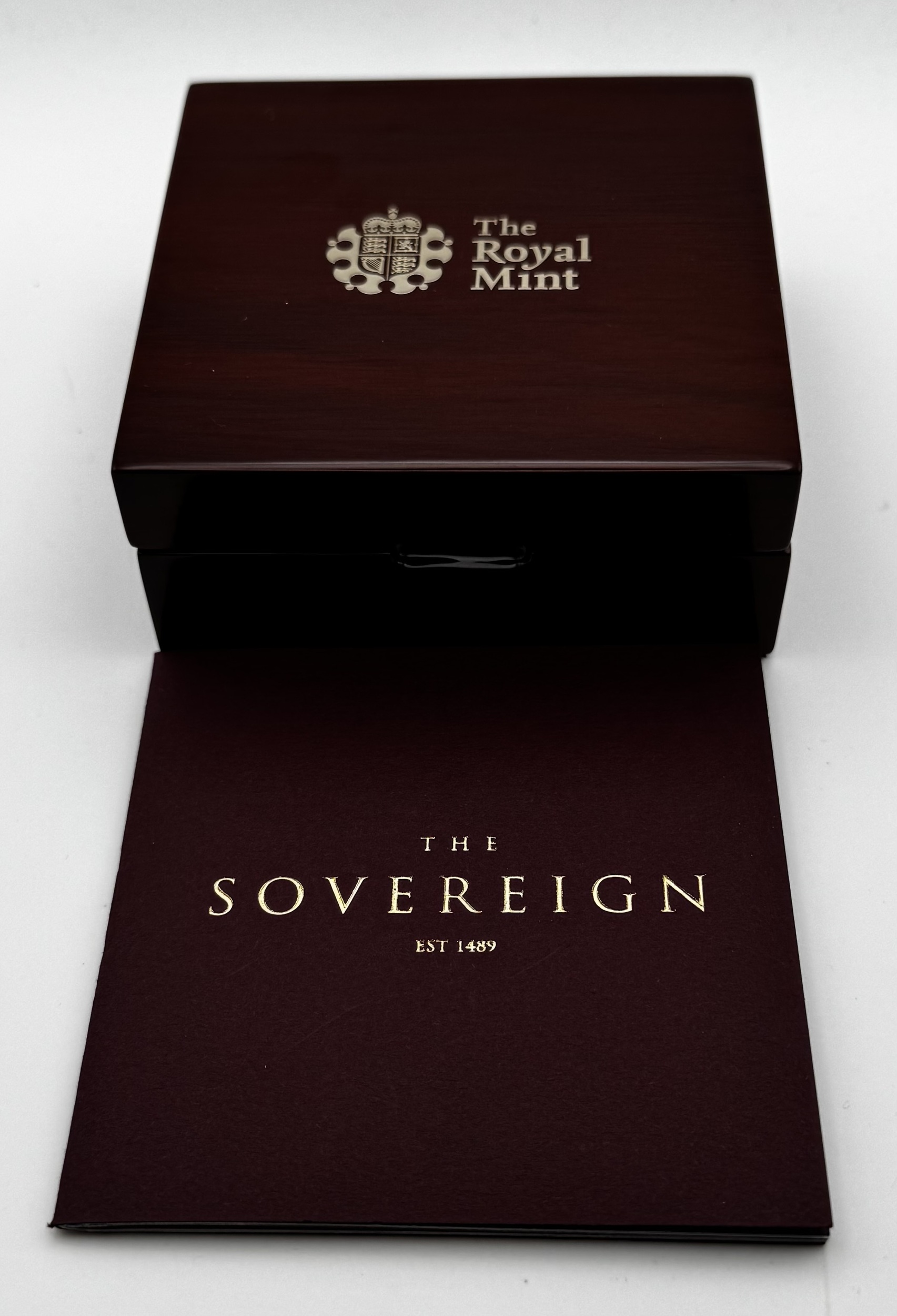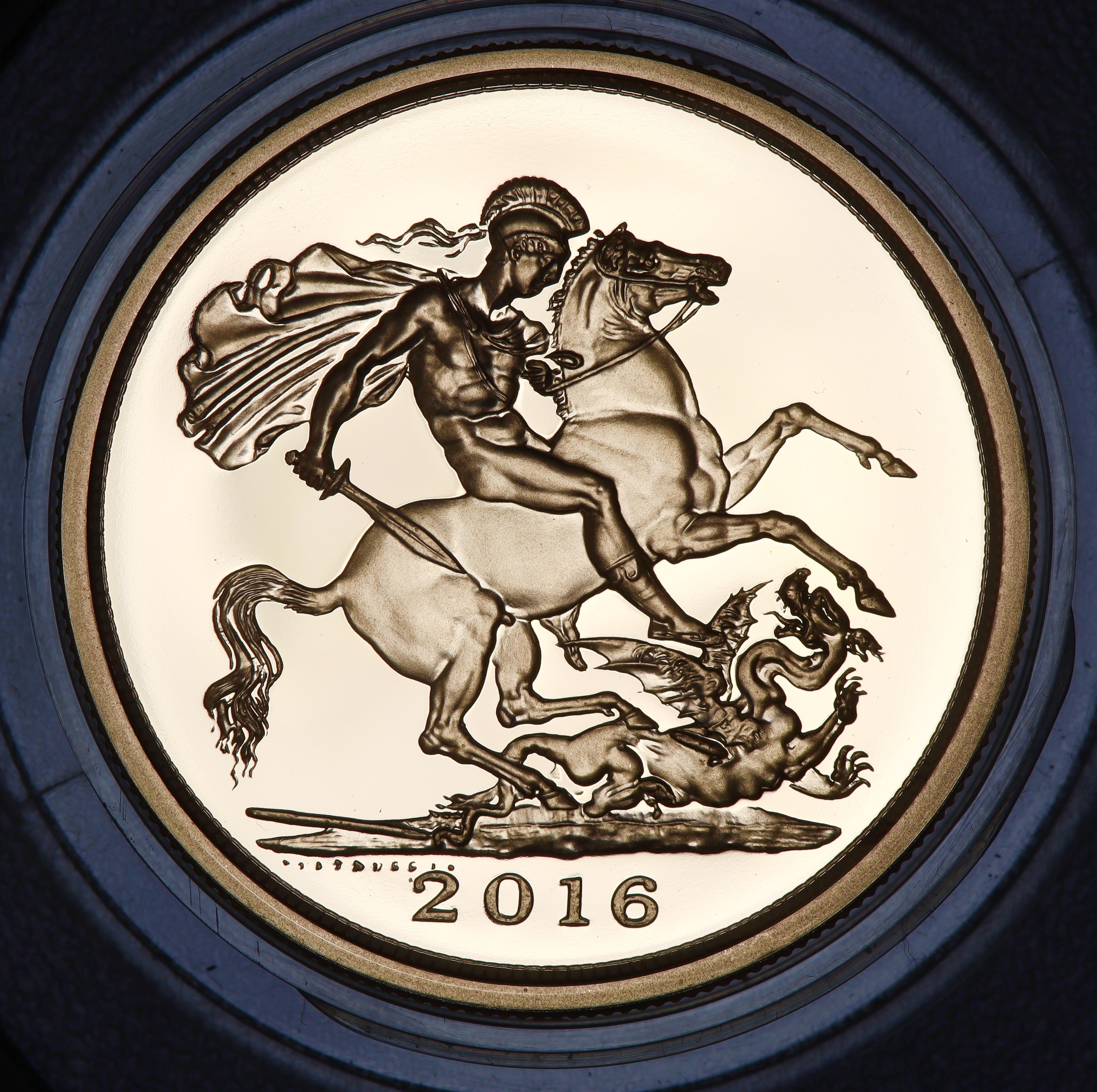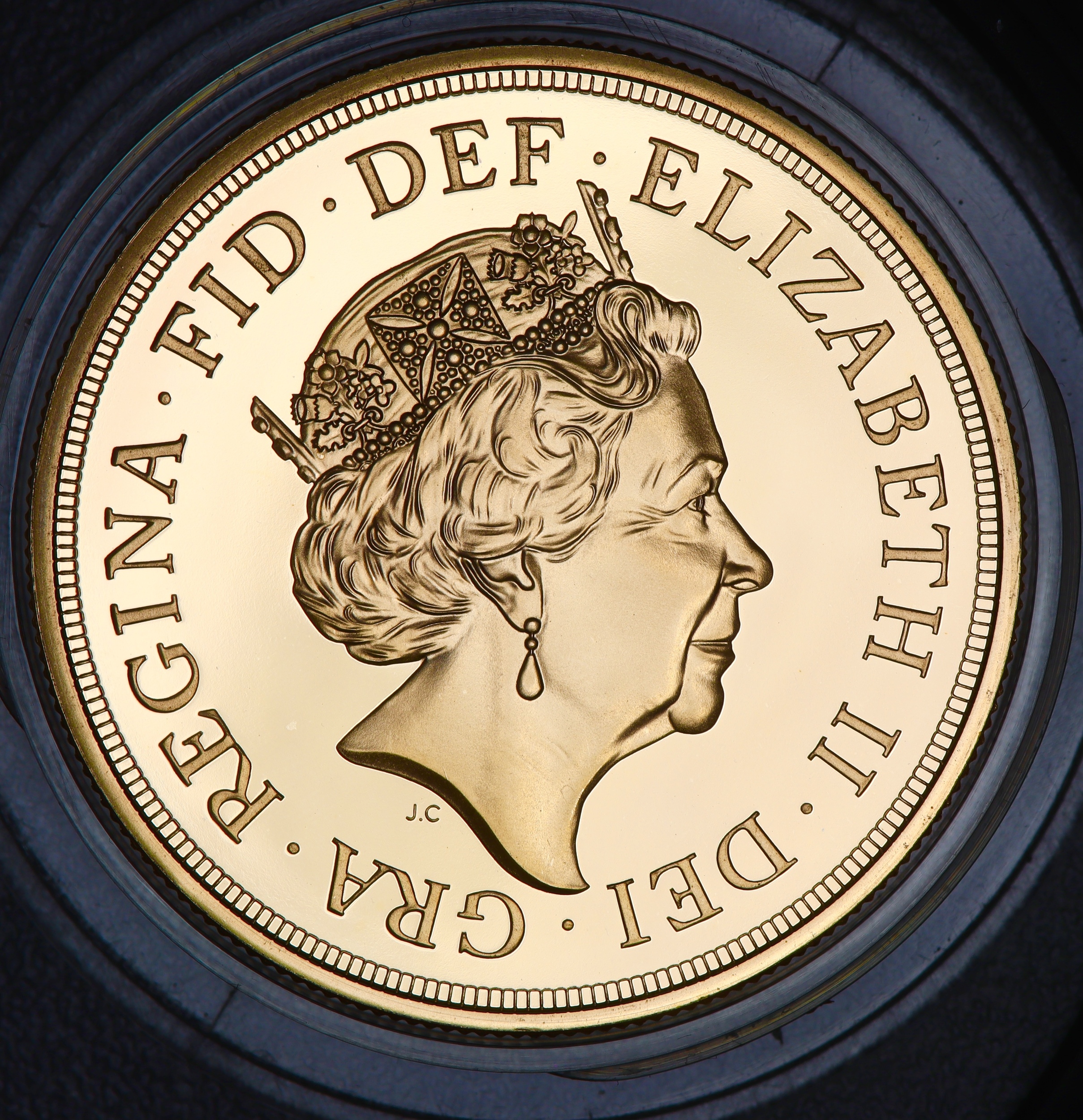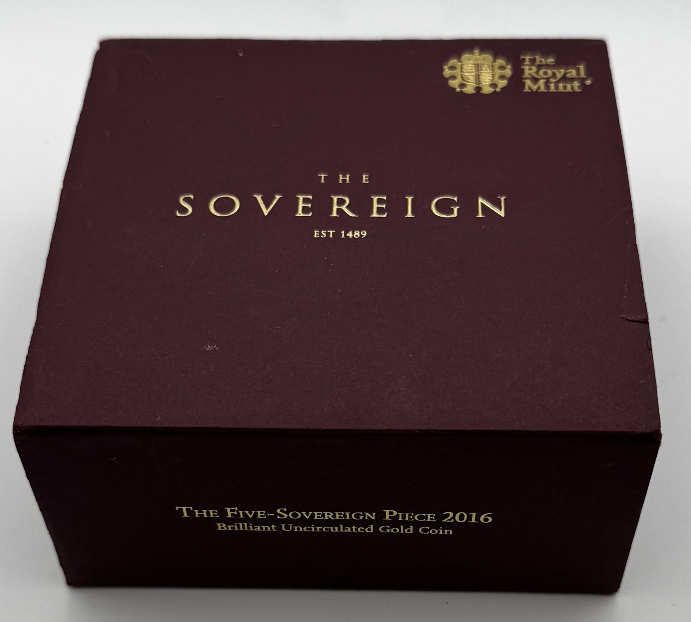 Brilliant uncirculated 2016 QE11 £5 gold quintuple sovereign.