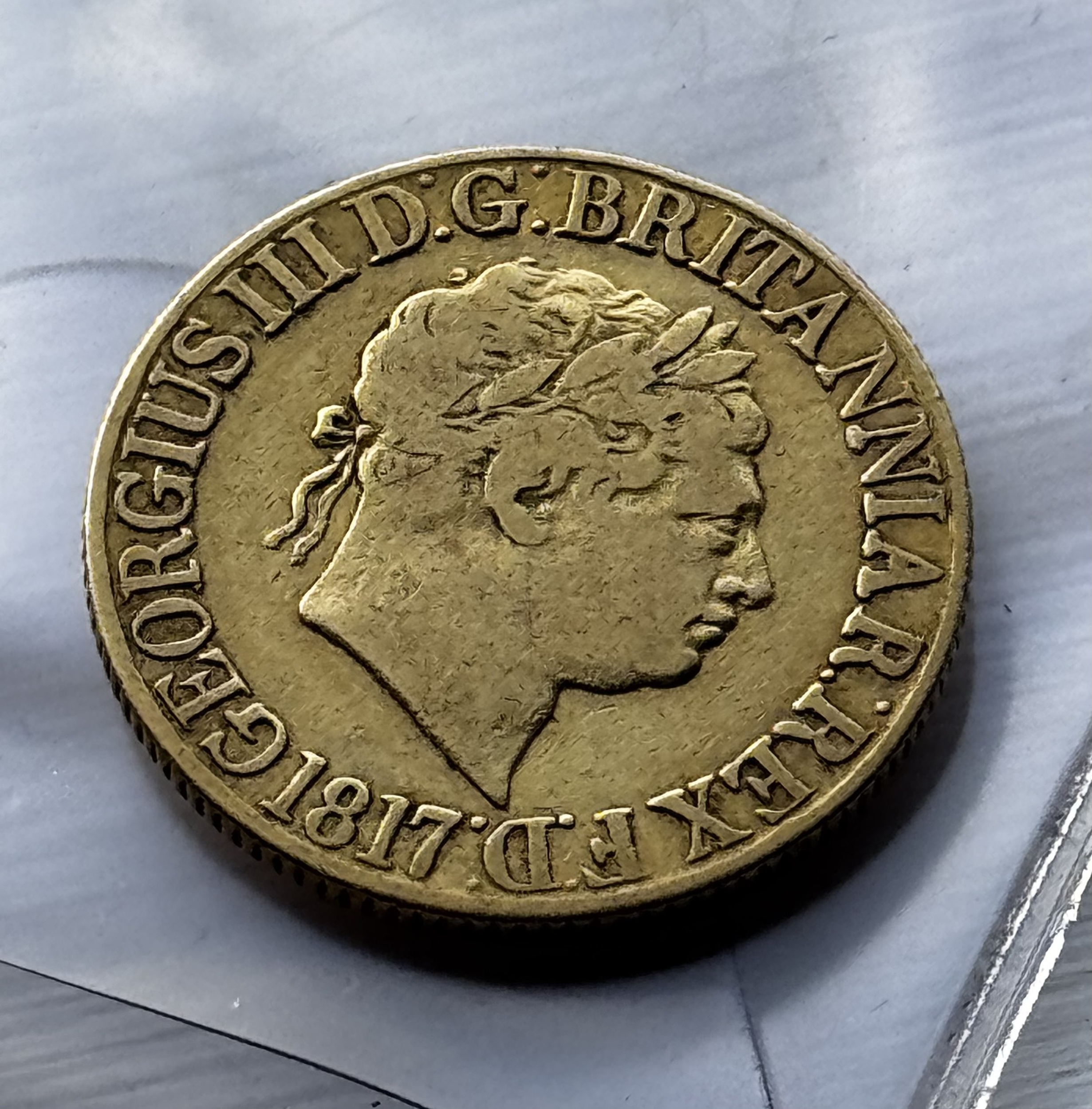 A rare first year issue 1817 King George 111 full gold sovereign. Never mounted or cleaned, a problem fee coin.