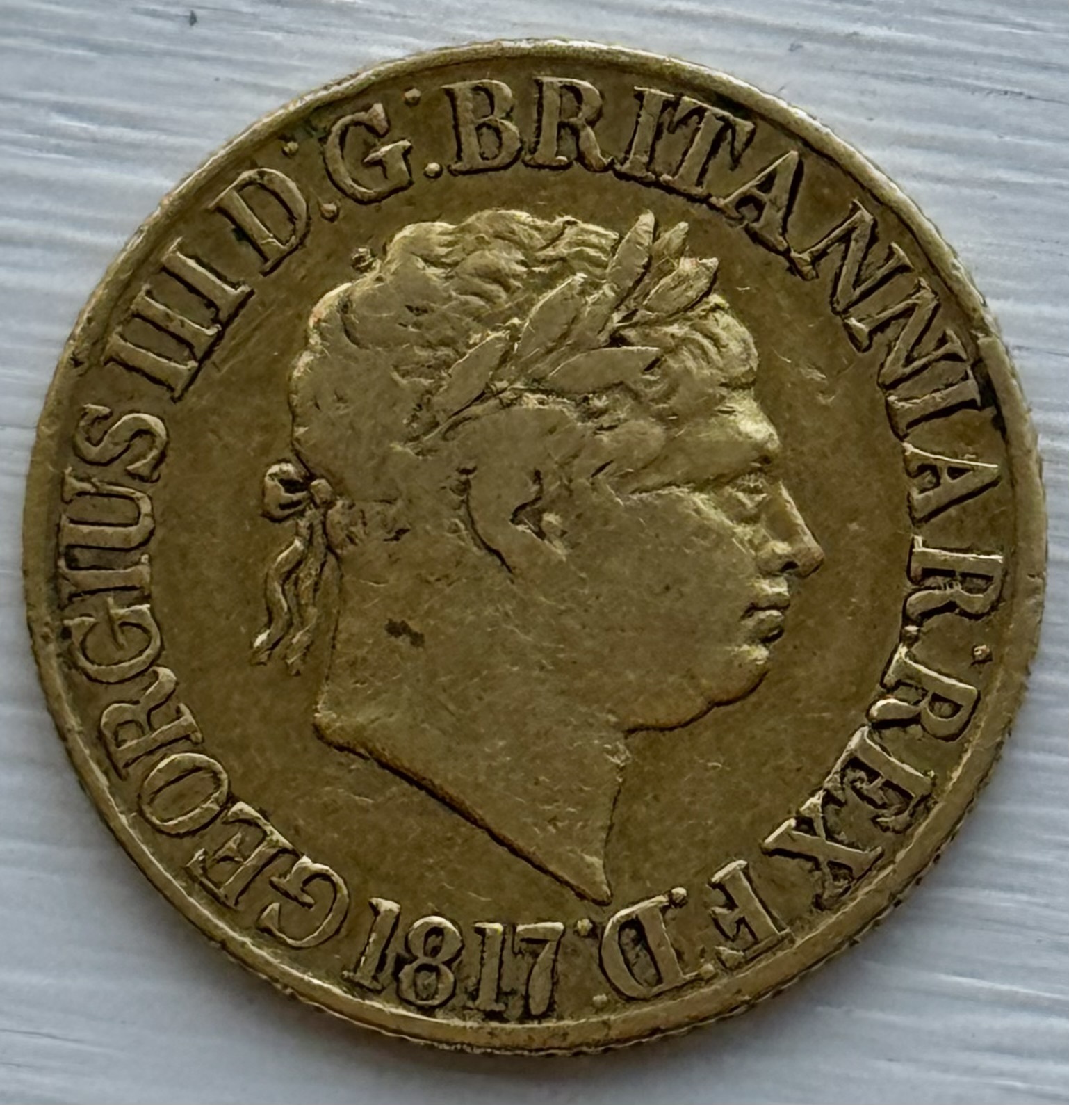 A rare first year issue 1817 King George 111 full gold sovereign. Never mounted or cleaned, a problem fee coin.
