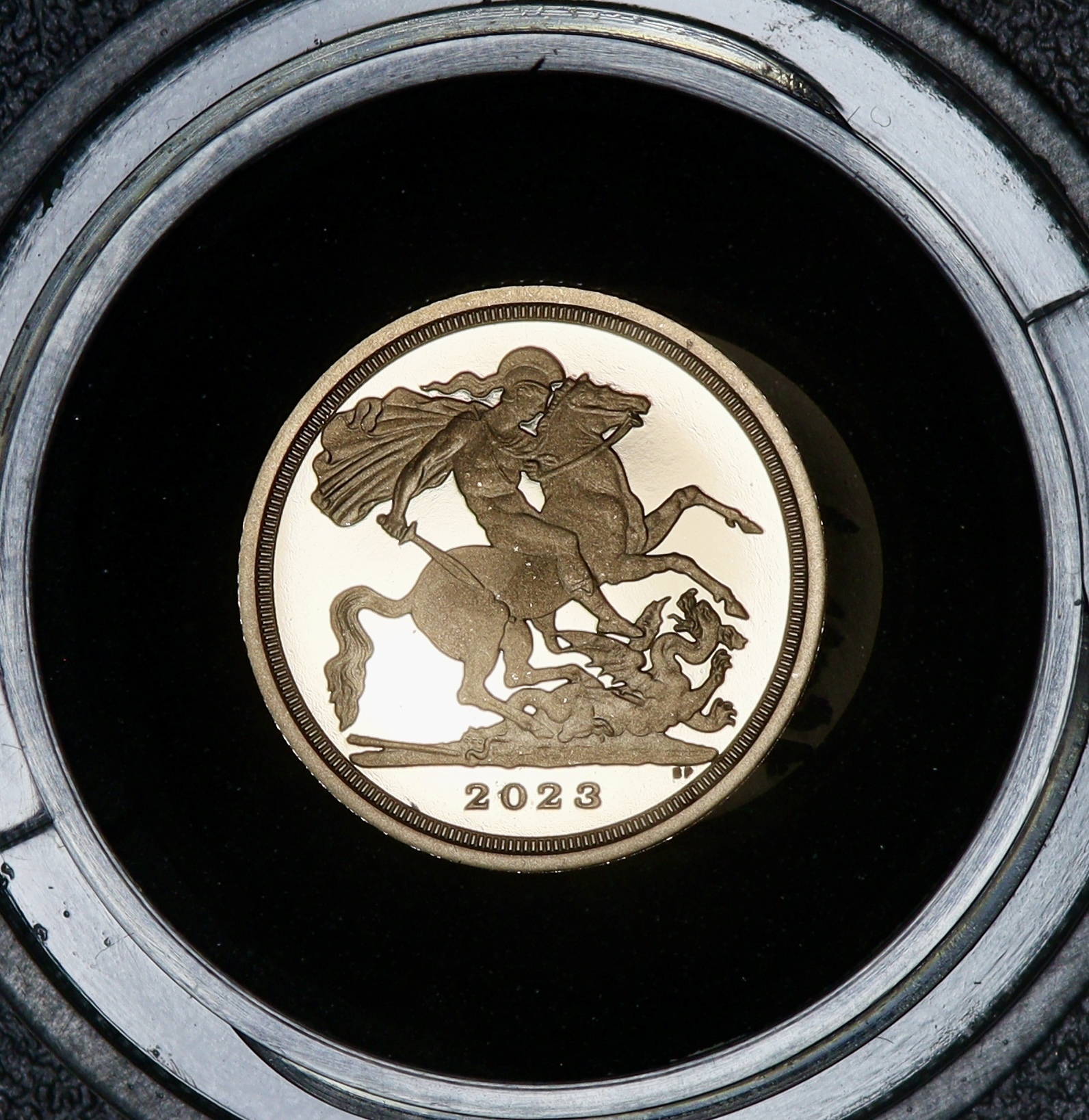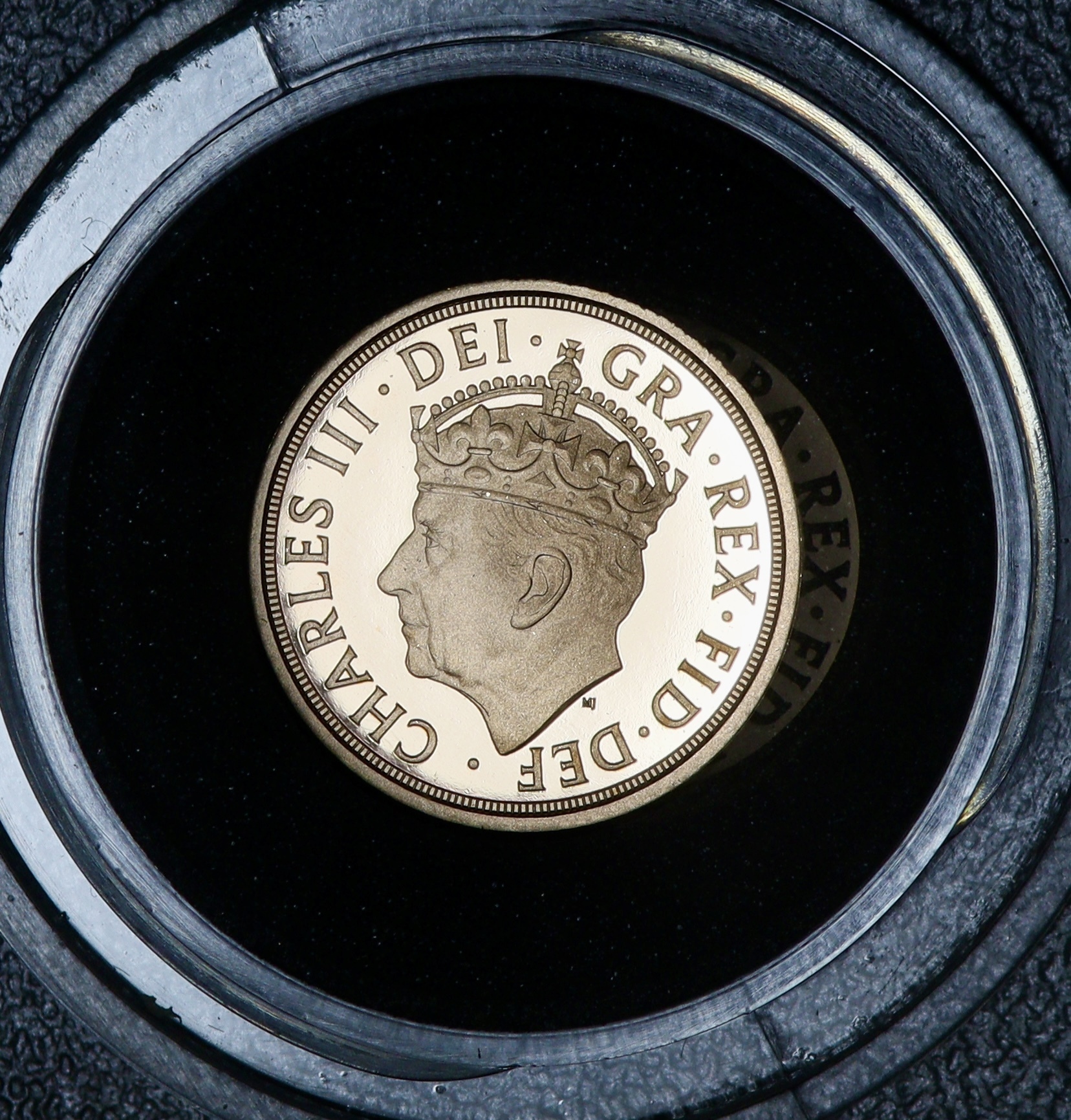 2023 King Charles 111 gold proof quarter sovereign. As struck and complete with all original mint packaging.