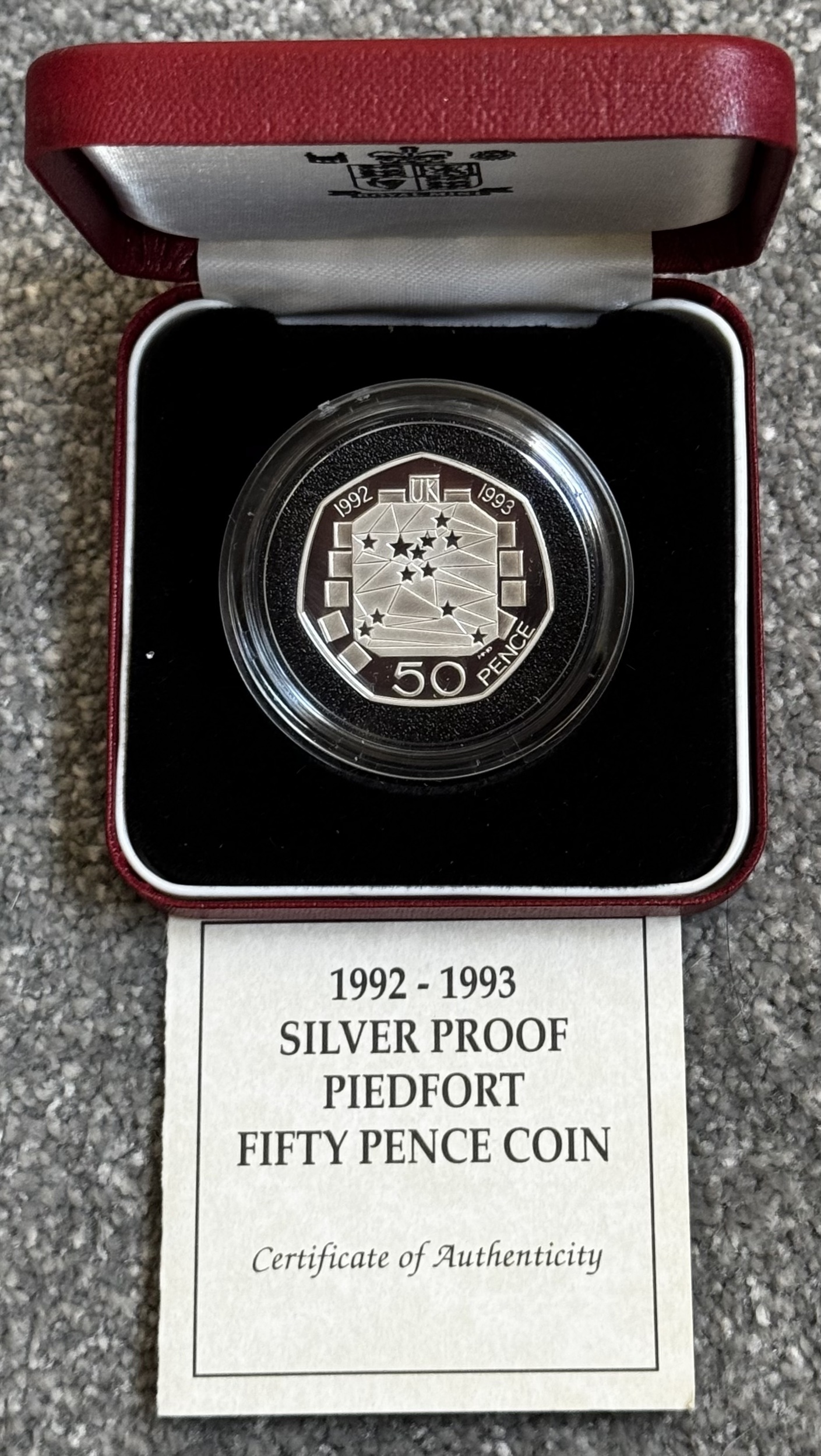 Stunning 1992-1993 FDC Silver Proof Piedfort Fifty Pence Coin - 27g Royal Mint Box and COA