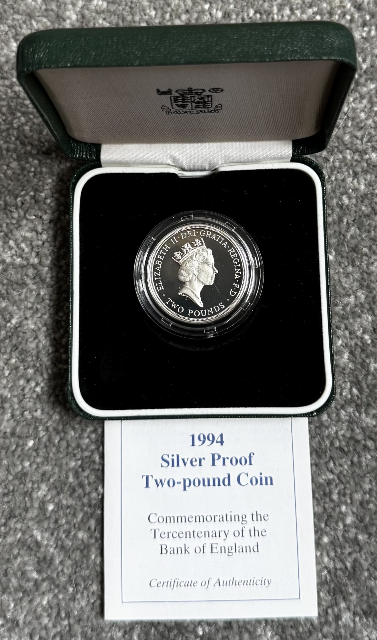 1994 FDC Silver Proof Two Pound Coin - 15.98g Coin commemorating the Tercentenary of the Bank of England Royal Mint Box and COA