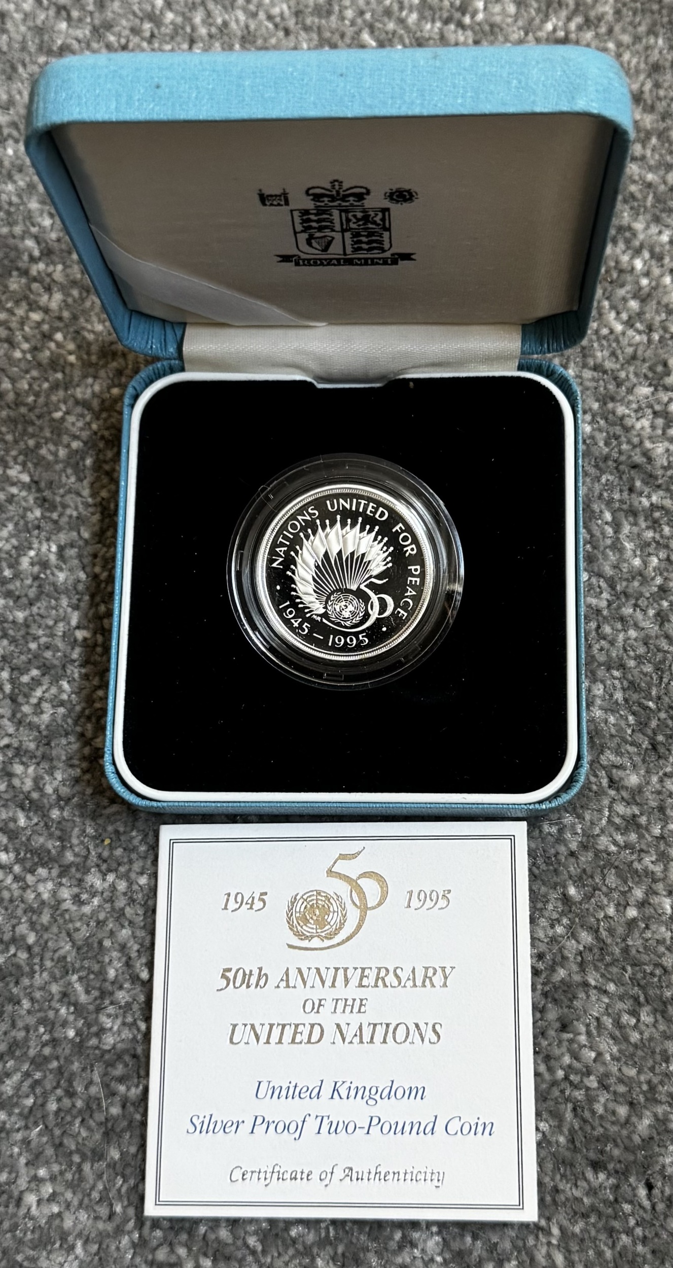 1995 FDC - Silver Proof £2 Coin - 15.98g 50th Anniversary of the United Nations Royal Mint Box and COA