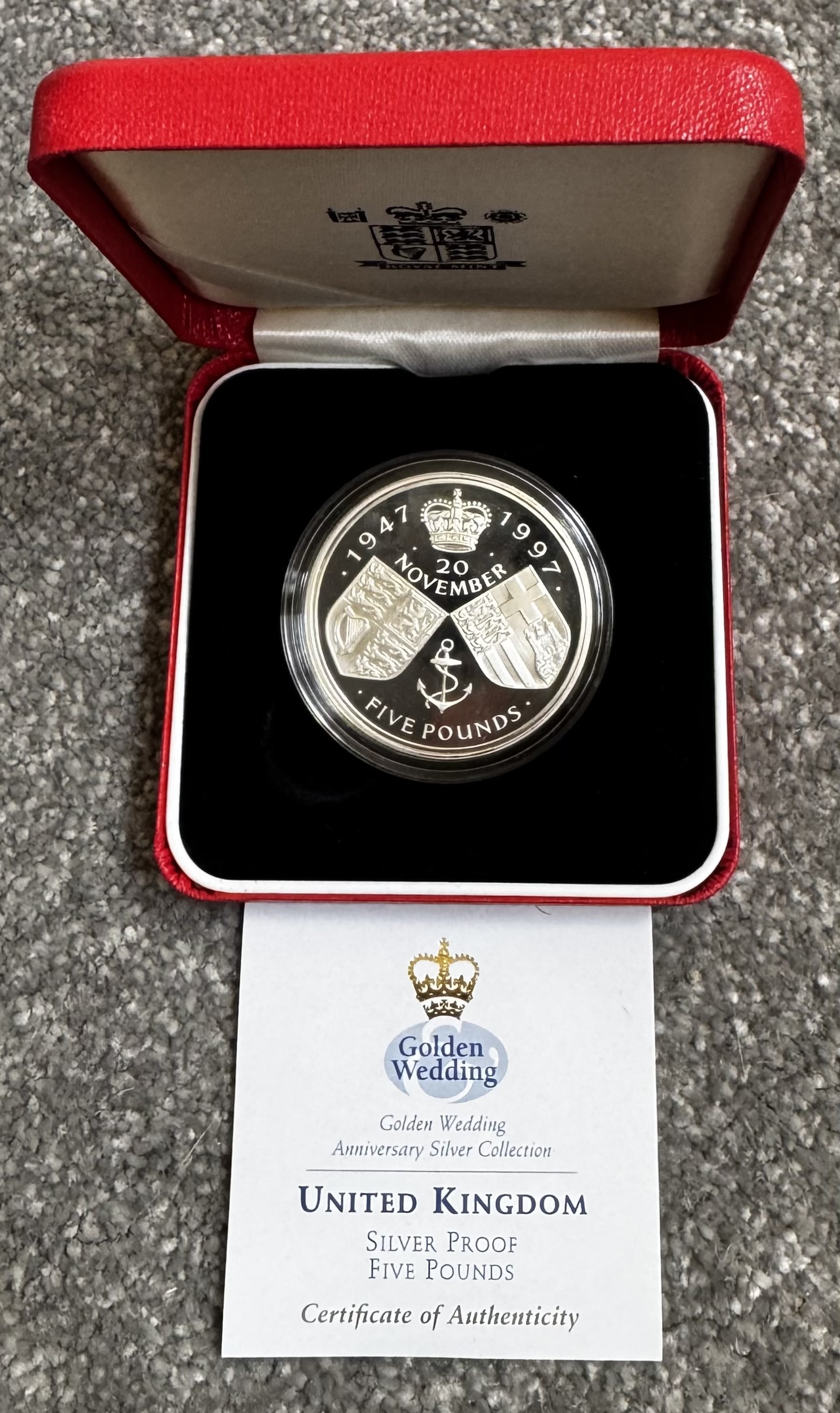 1997 Golden Wedding Anniversary Silver Proof £5 Coin - 28.28g