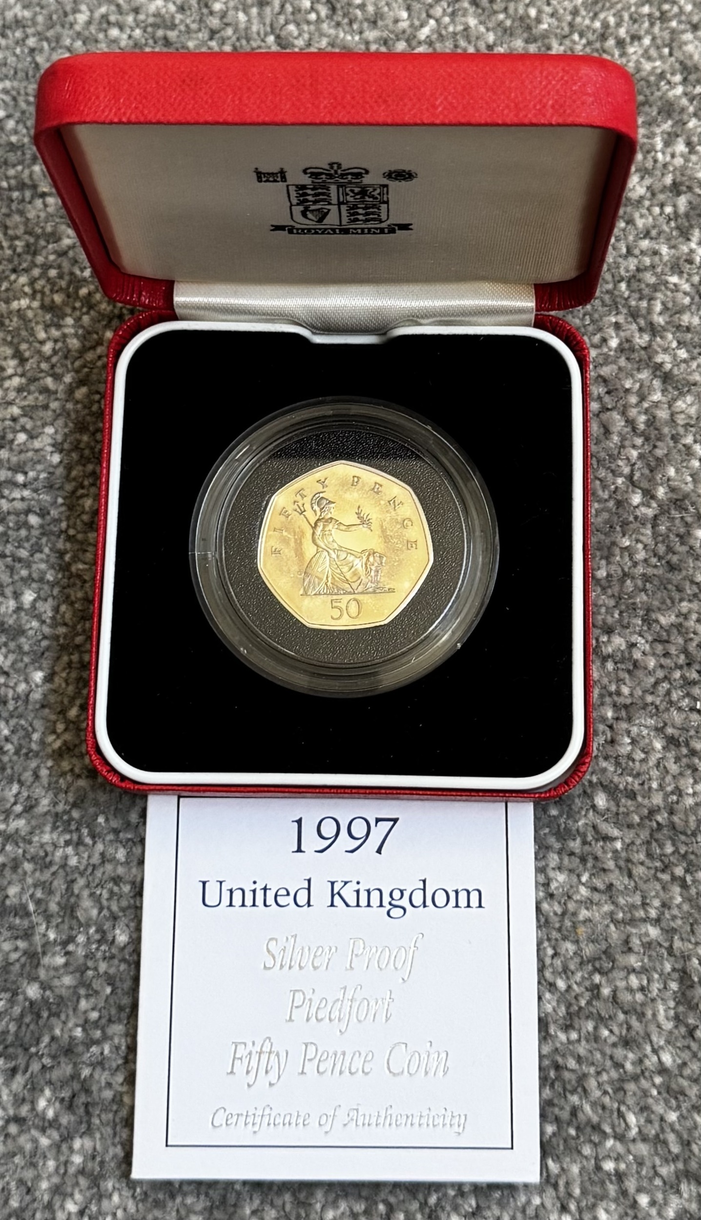 1997 Silver Proof Piedfort Fifty Pence Coin - 16g Some Toning Royal Mint Box and COA