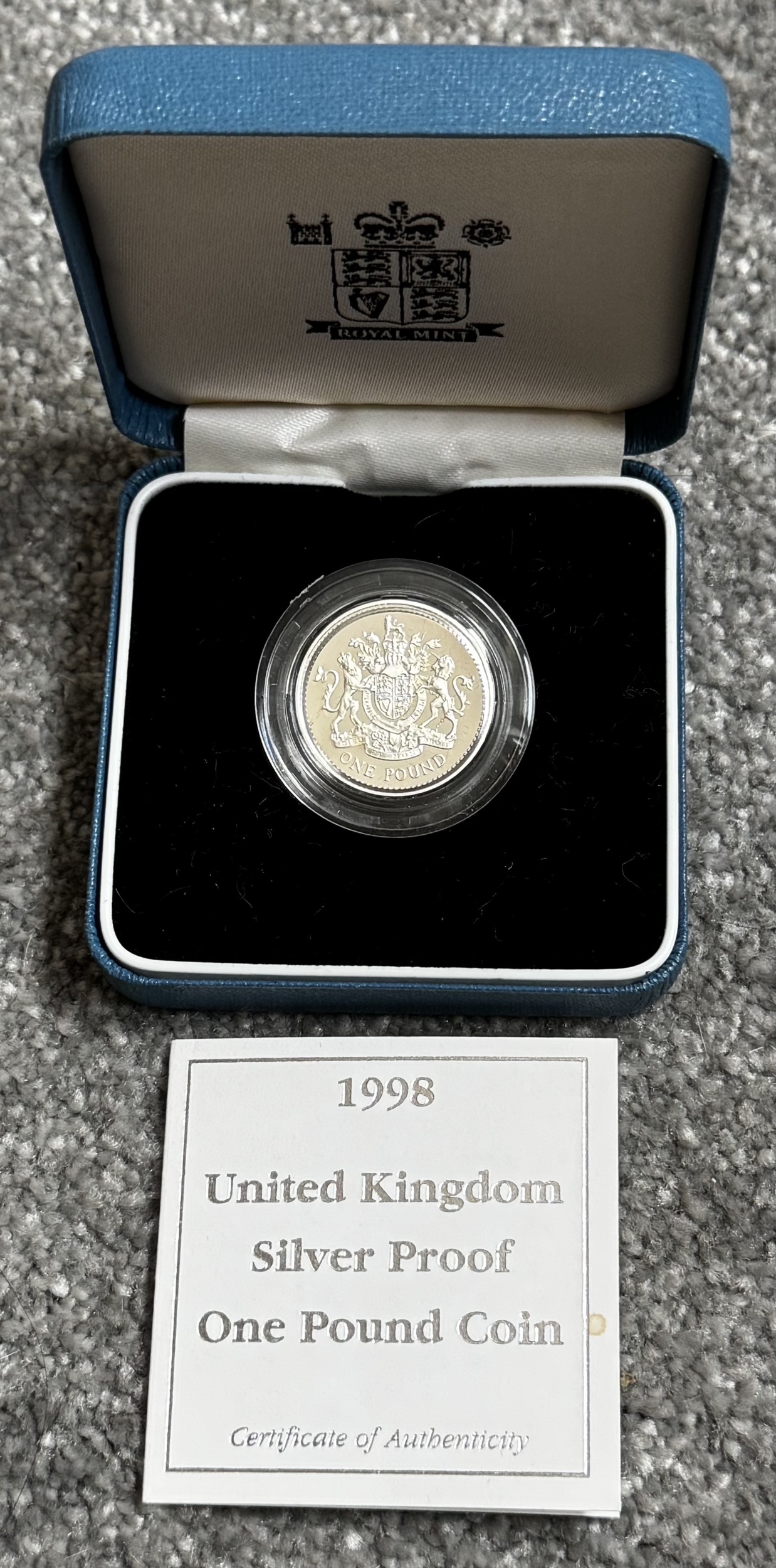 Lovely 1998 Silver Proof £1 Coin - 9.5g Royal Mint Box and COA