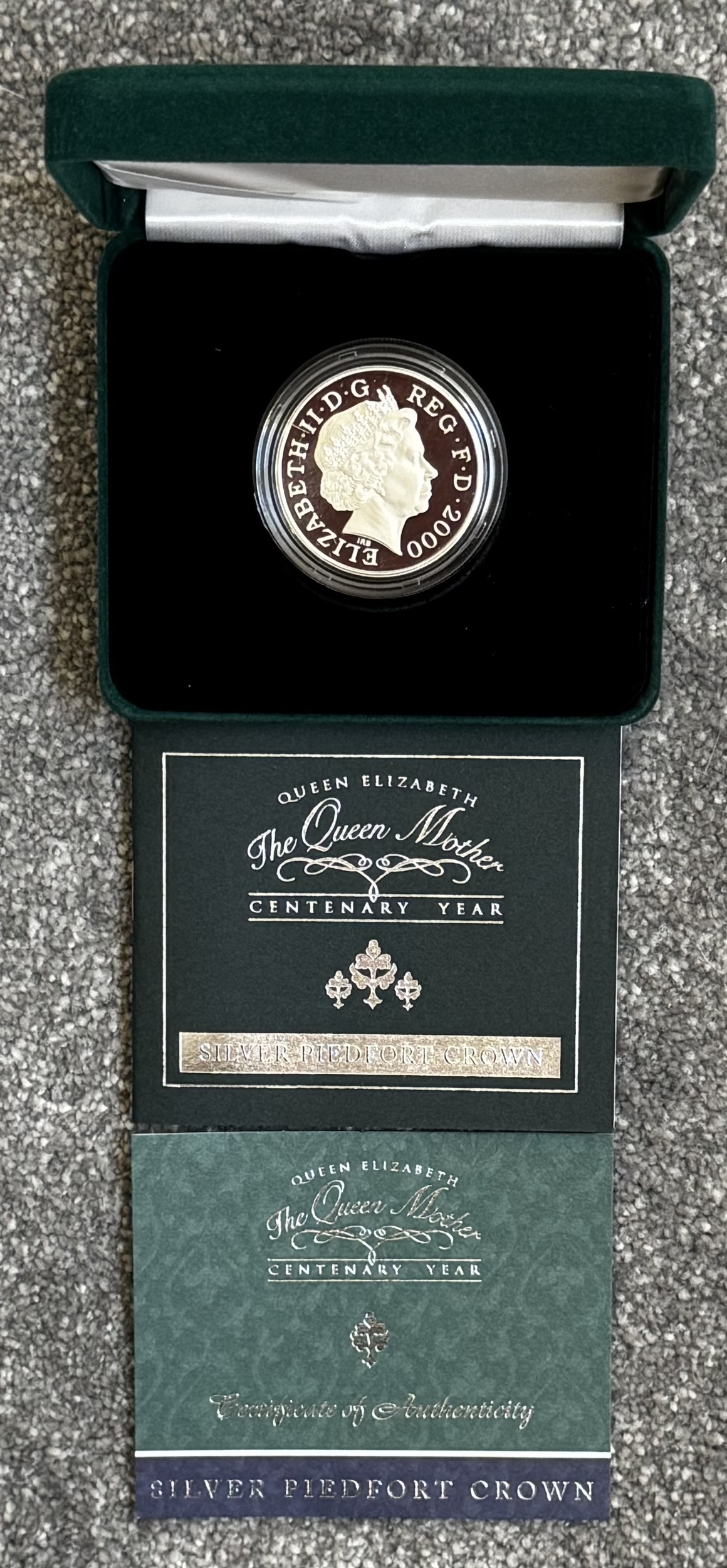 Stunning 2000 FDC Silver Proof Piedfort Centenary Crown - 56.56g Queen Mother Centenary Crown Royal Mint Box and COA