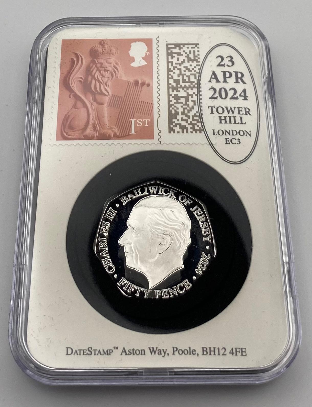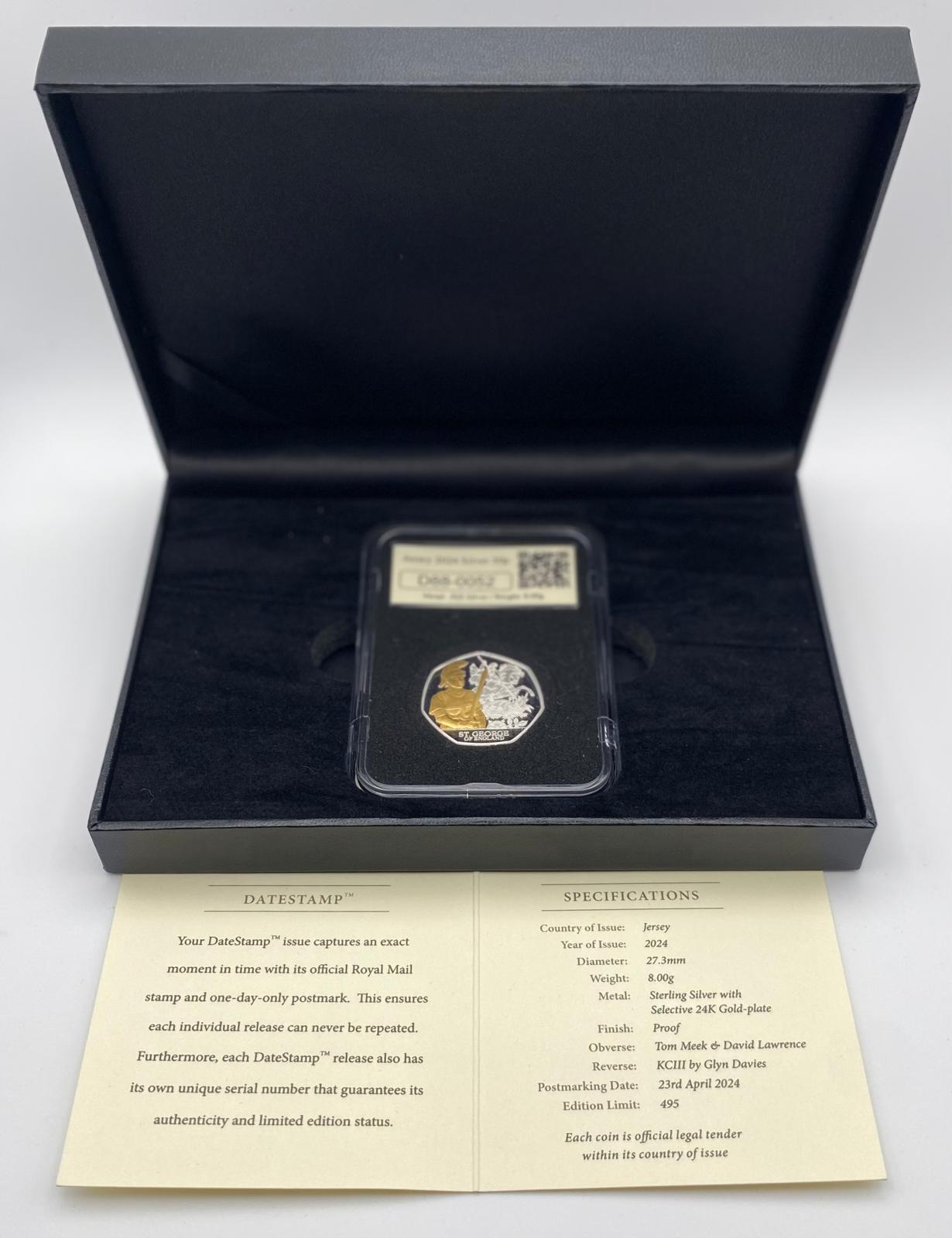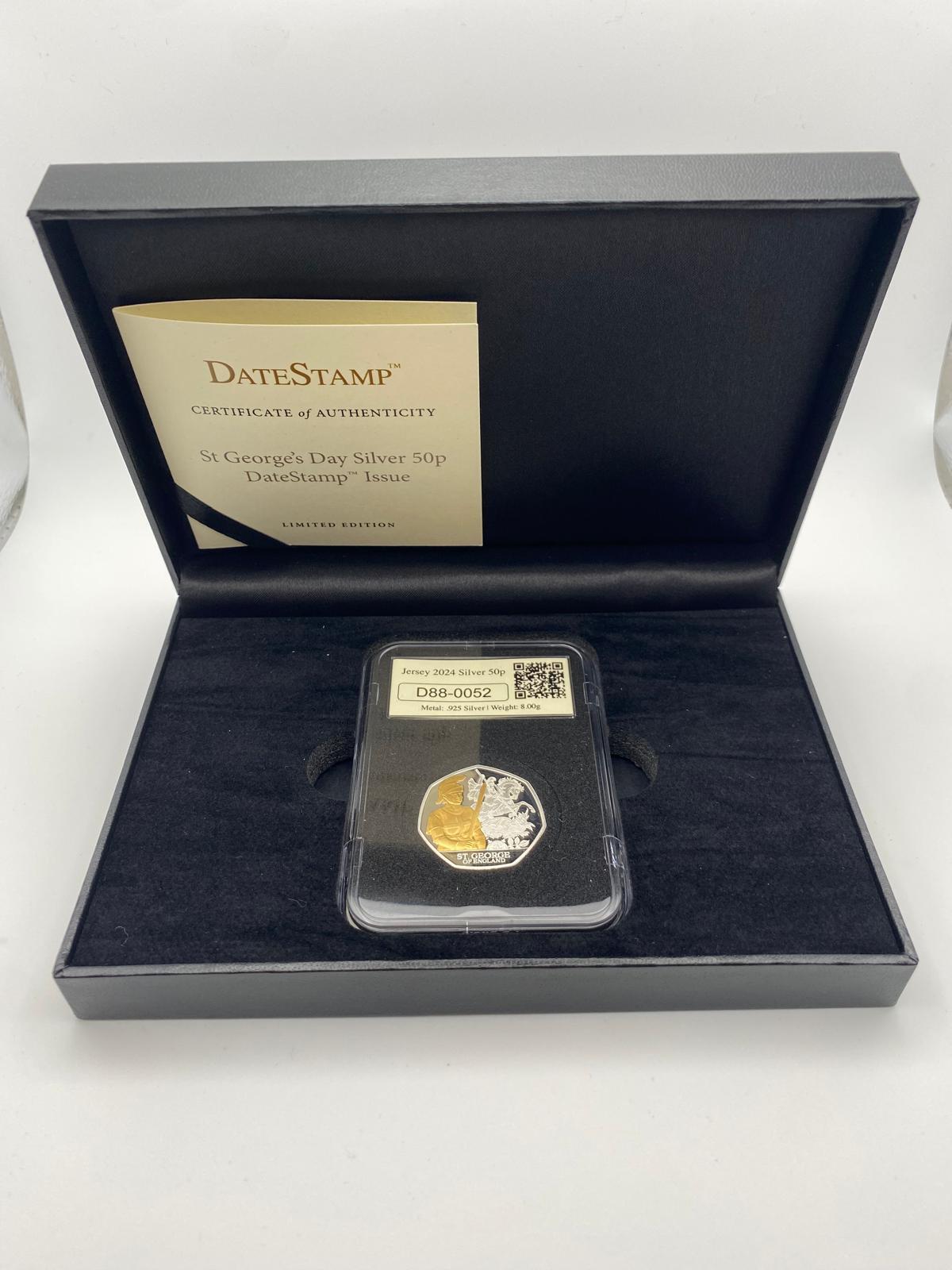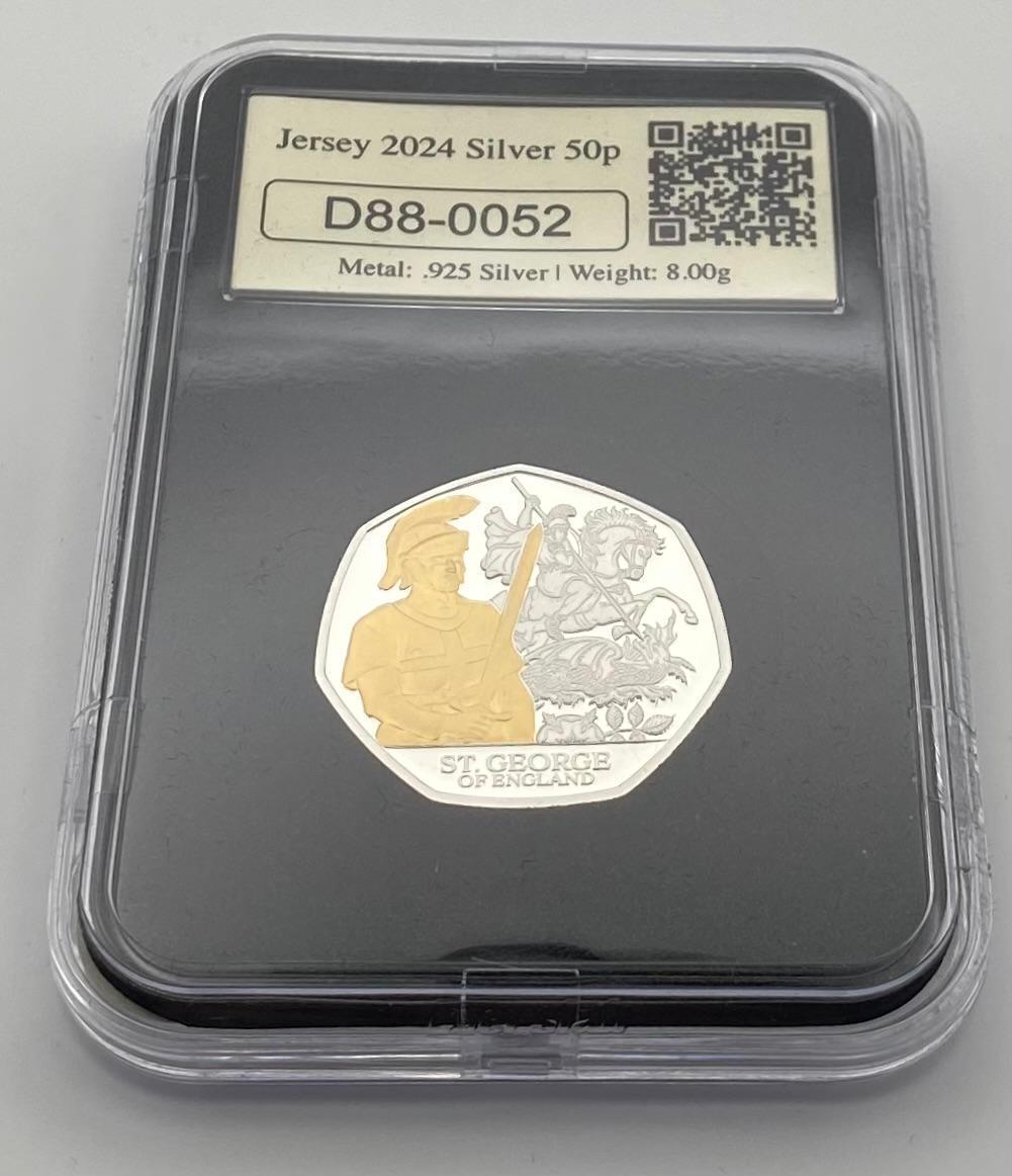 Stunning Coin. 2024 DateStamp St George's Day 50p - .925 Silver plated with selective 24k Gold Brilliant Uncirculated 8g Issue Limit 495