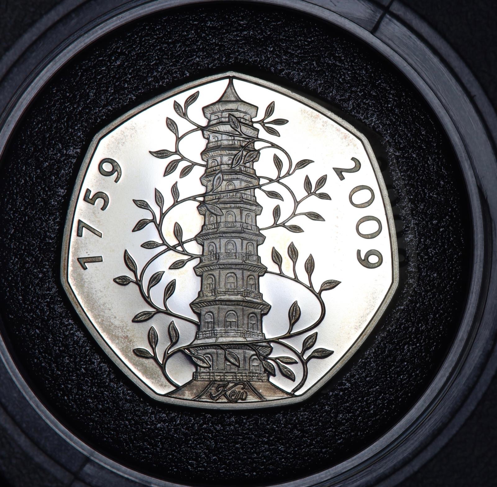 A rare 2009 original proof Kew Gardens 50p coin. A lovely coin with excellent detail although slight toning that does not detract. Coin will be supplied in the original mint capsule.