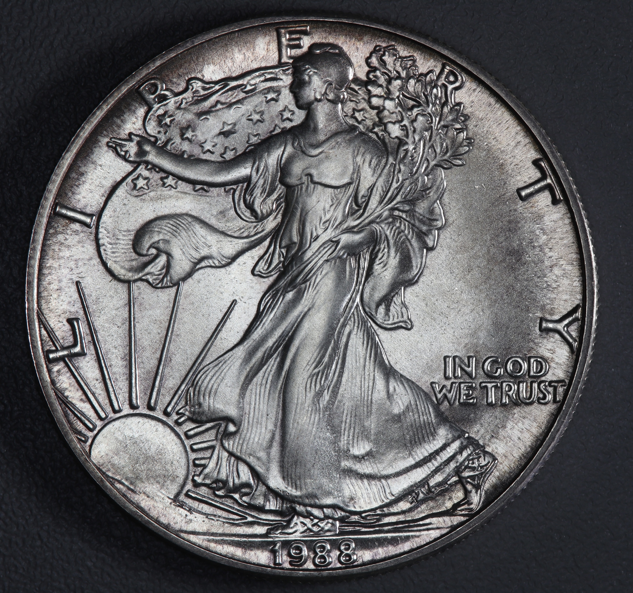 Nice early issue 1988 silver one ounce Eagle. One ounce of fine silver. Diameter - 40.6 mm Weight - 31.1 grams Quality - .999 silver
