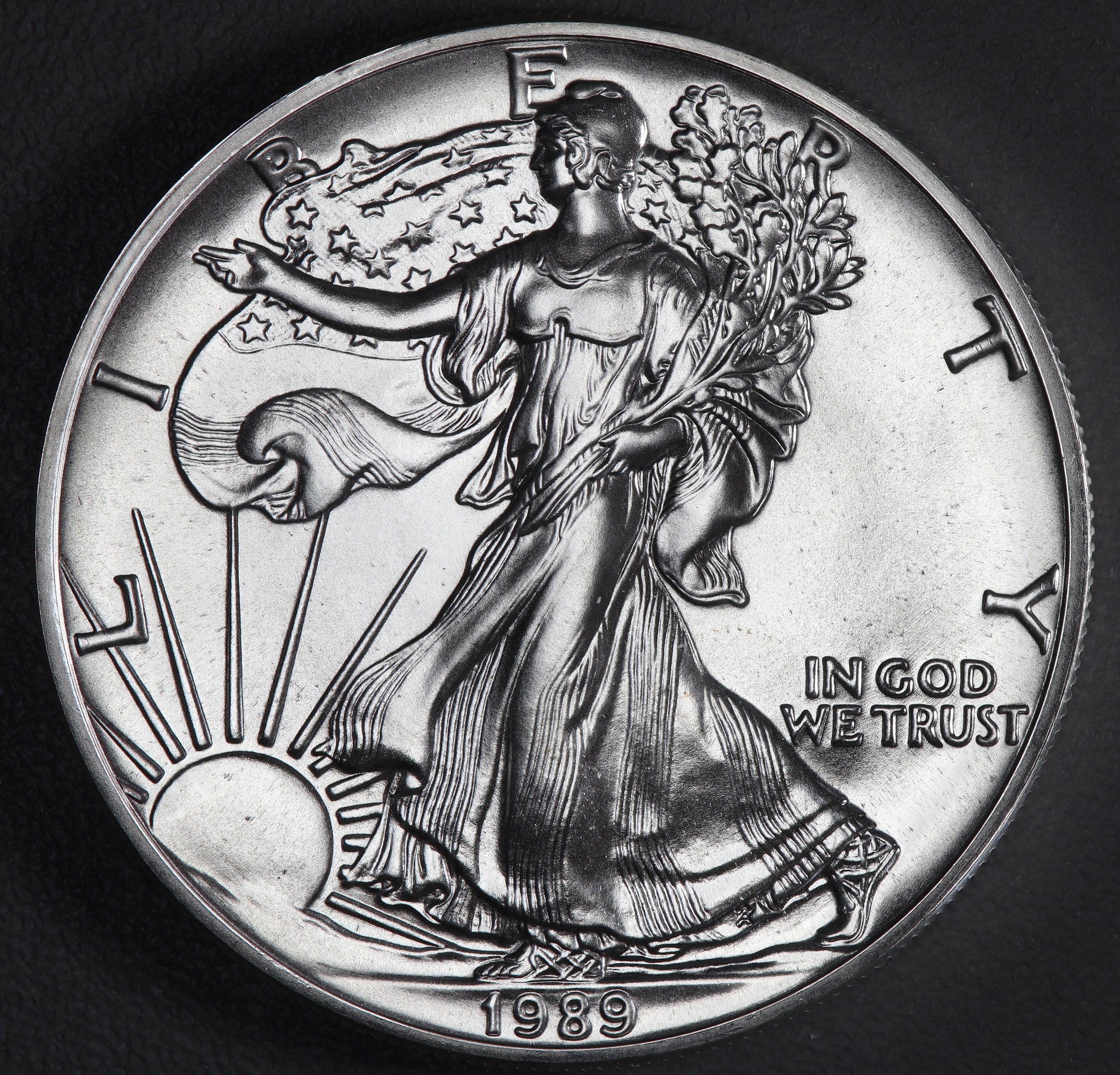 Nice early issue 1989 silver one ounce Eagle. One ounce of fine silver. Diameter - 40.6 mm Weight - 31.1 grams Quality - .999 silver