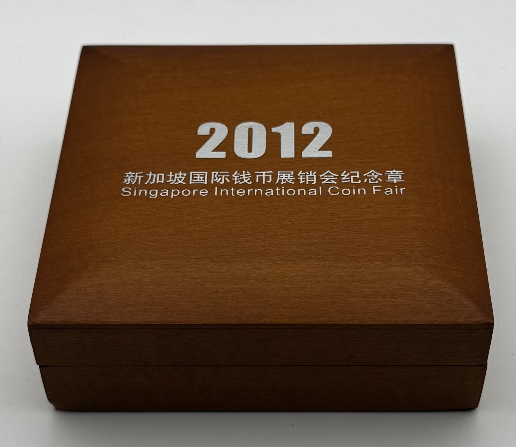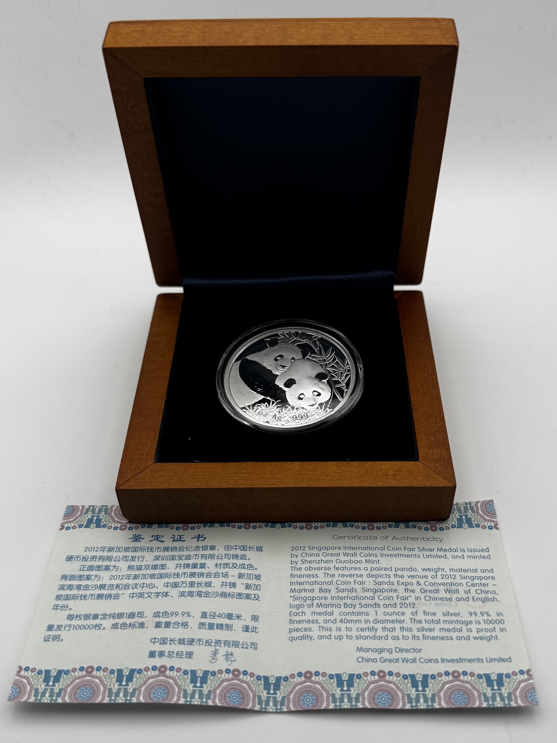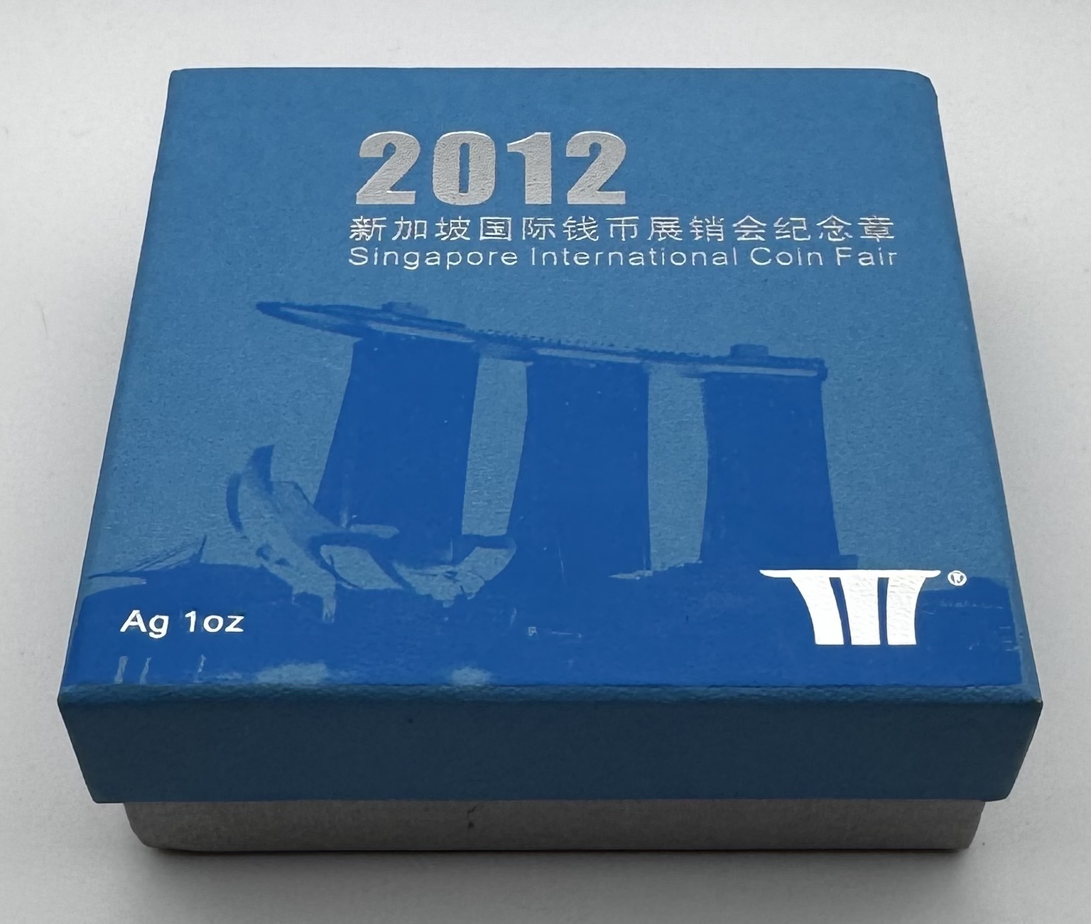 A scarce 2012 Singapore worlds fair of money silver medal. This beautiful coin is struck to proof standards and is 1 ounce of pure silver. Complete with original packaging and coa. We also have another - issue number 06616