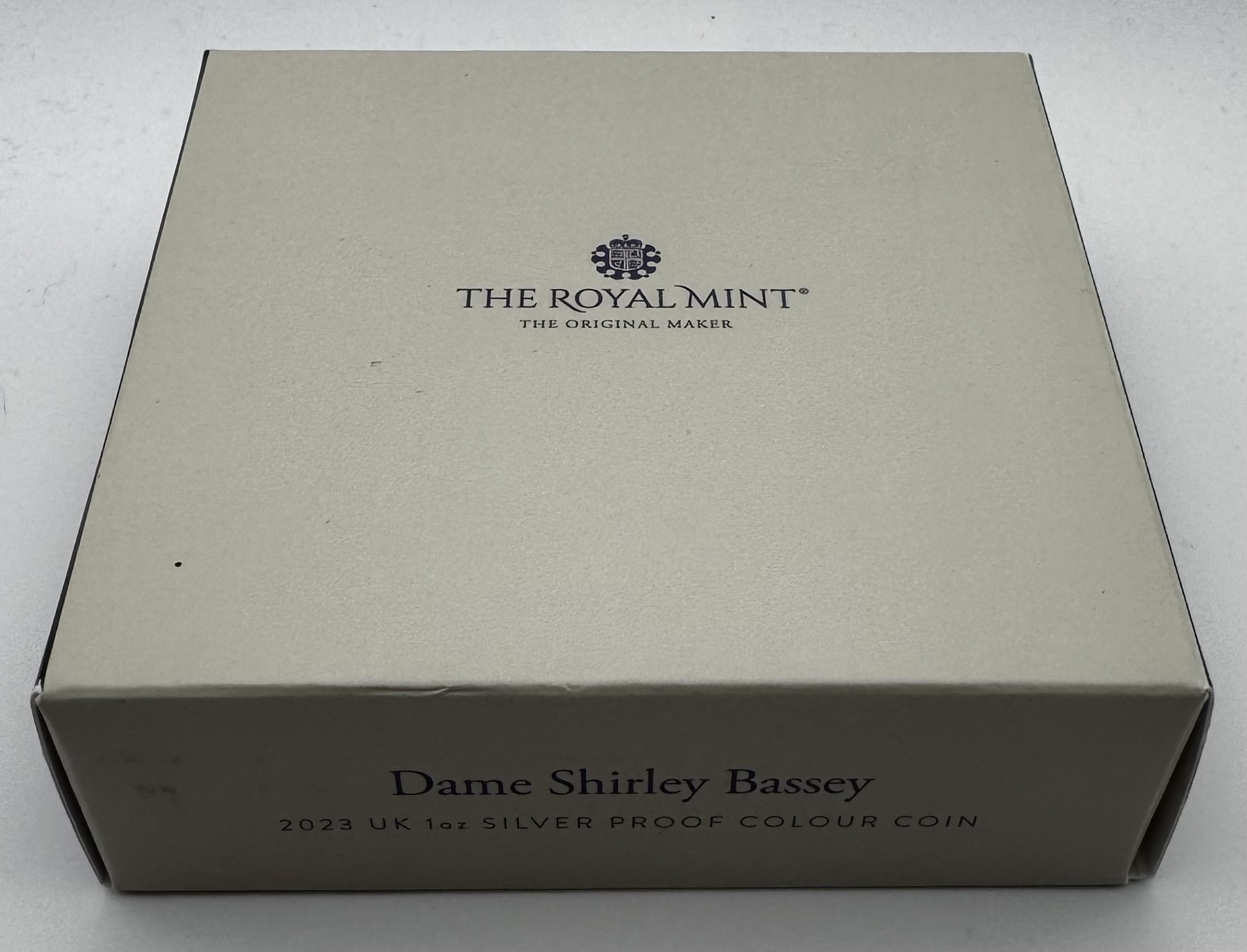 One of only 3260 minted is this beautiful Royal mint 1 ounce silver proof coloured coin celebrating the genius that is Dame Shirley Bassey.