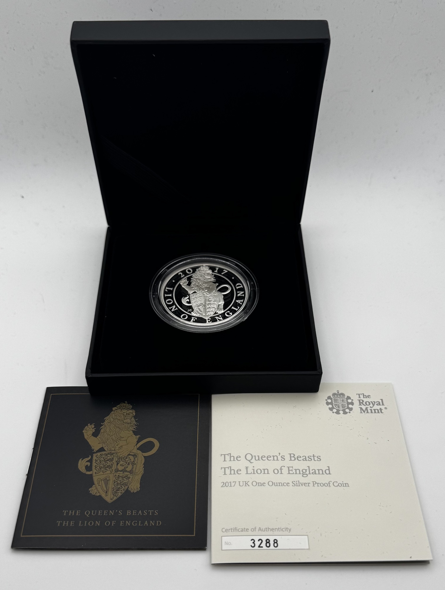 2017 QE11 silver proof ‘ The Lion of England’ coin. Issue limit of 8500 this is number 3150. Complete with all original packaging and coa WE ALSO HAVE ANOTHER EXAMPLE ISSUE NUMBER 3288