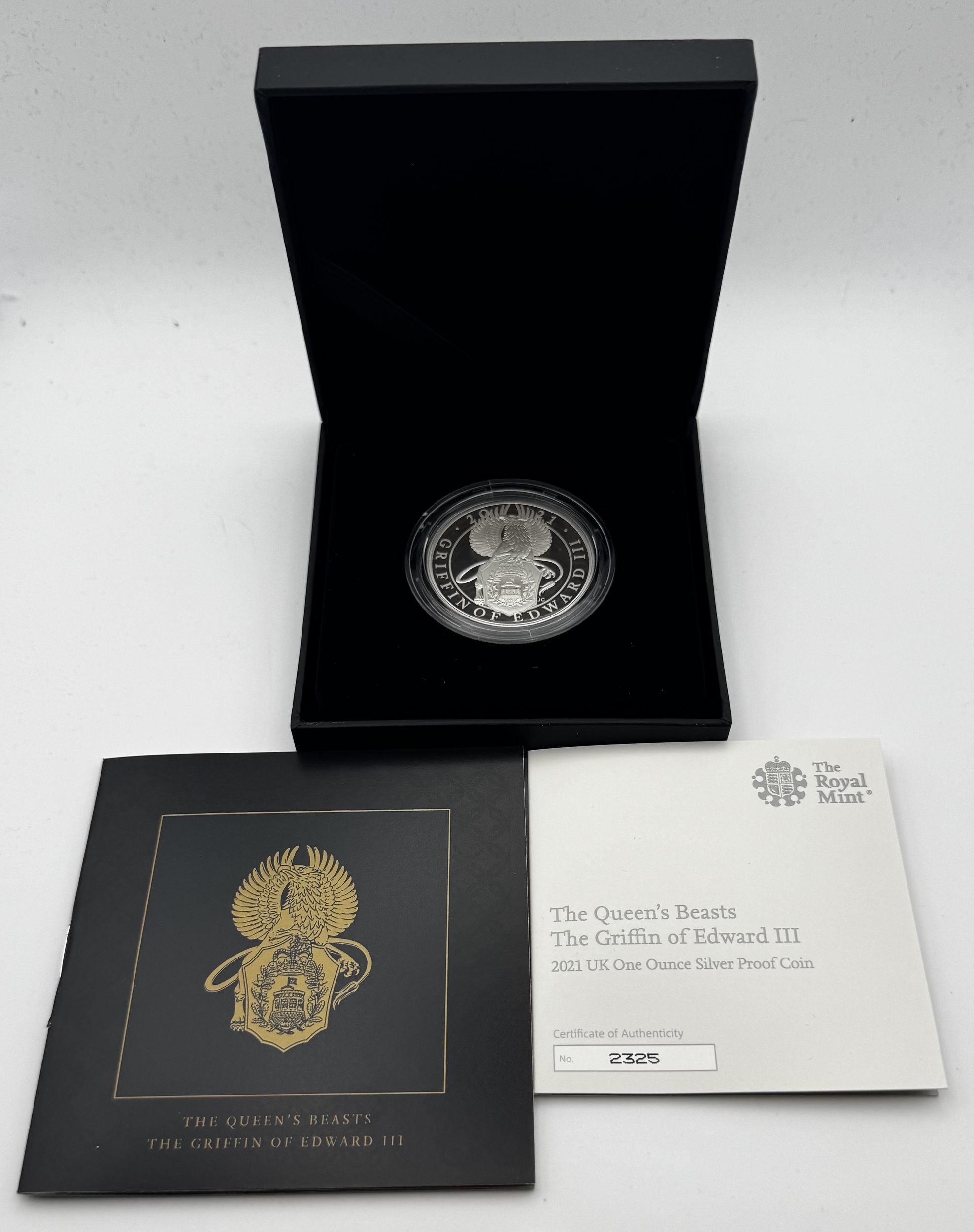 2021 QE11 silver proof ‘ The Griffin of Edward 111’ coin. Issue limit of 4400 this is number 2325. Complete with all original packaging and coa