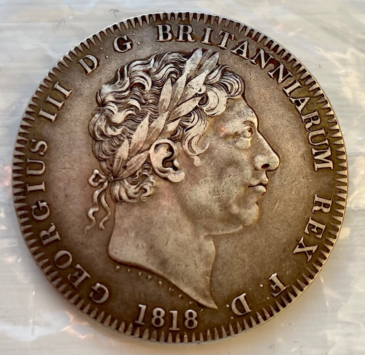 A nice problem free 1818 King George 111 silver crown. The first year that these coins were issued under his reign.